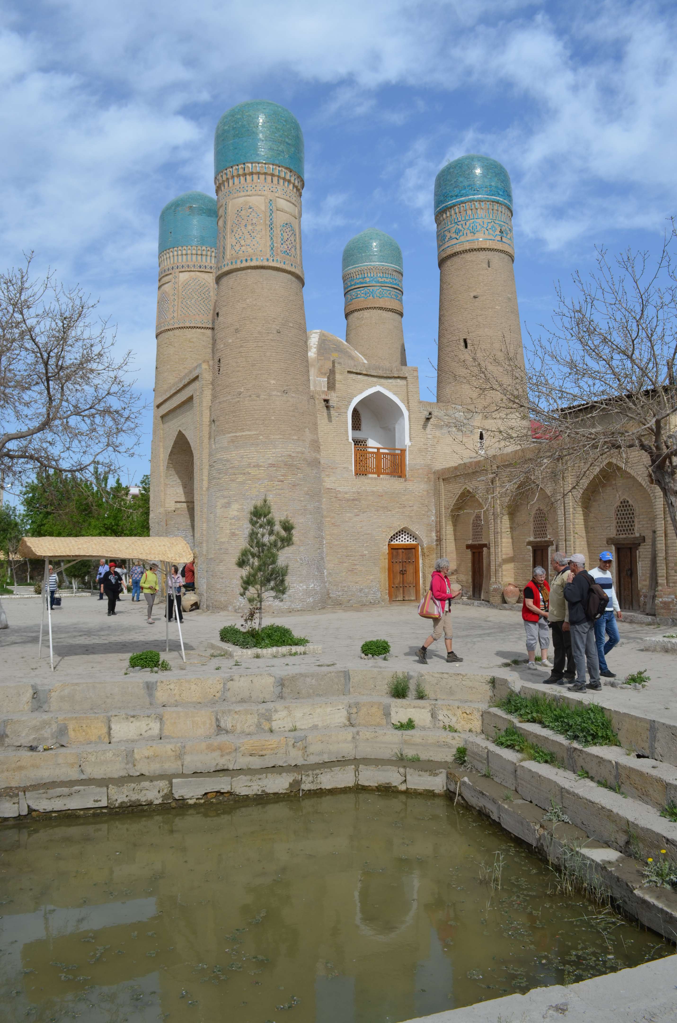 Retiendront notre attention, la citadelle et son palais royal, le Tchar Minar et ses 4 minarets bleus, la mosquée de l’Emir et enfin le mausolée de Bakhaoudin Naqchband où les pèlerins s’escriment à arracher des fragments d’écorce d’un murier sacré, en guise de porte- bonheur, ou à se masser les parties de leur corps qui les font souffrir  contre les branches, en espérant un soulagement.