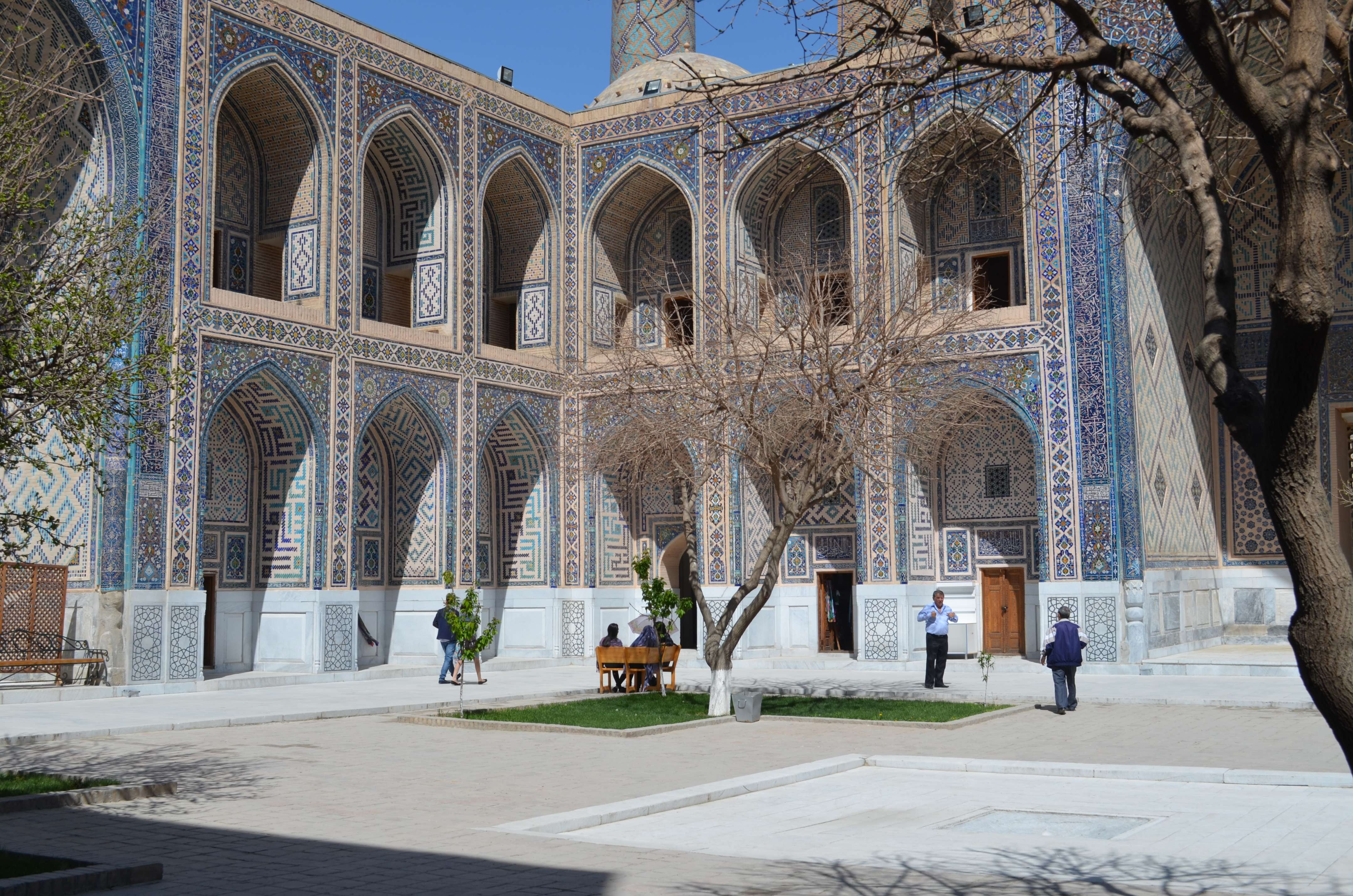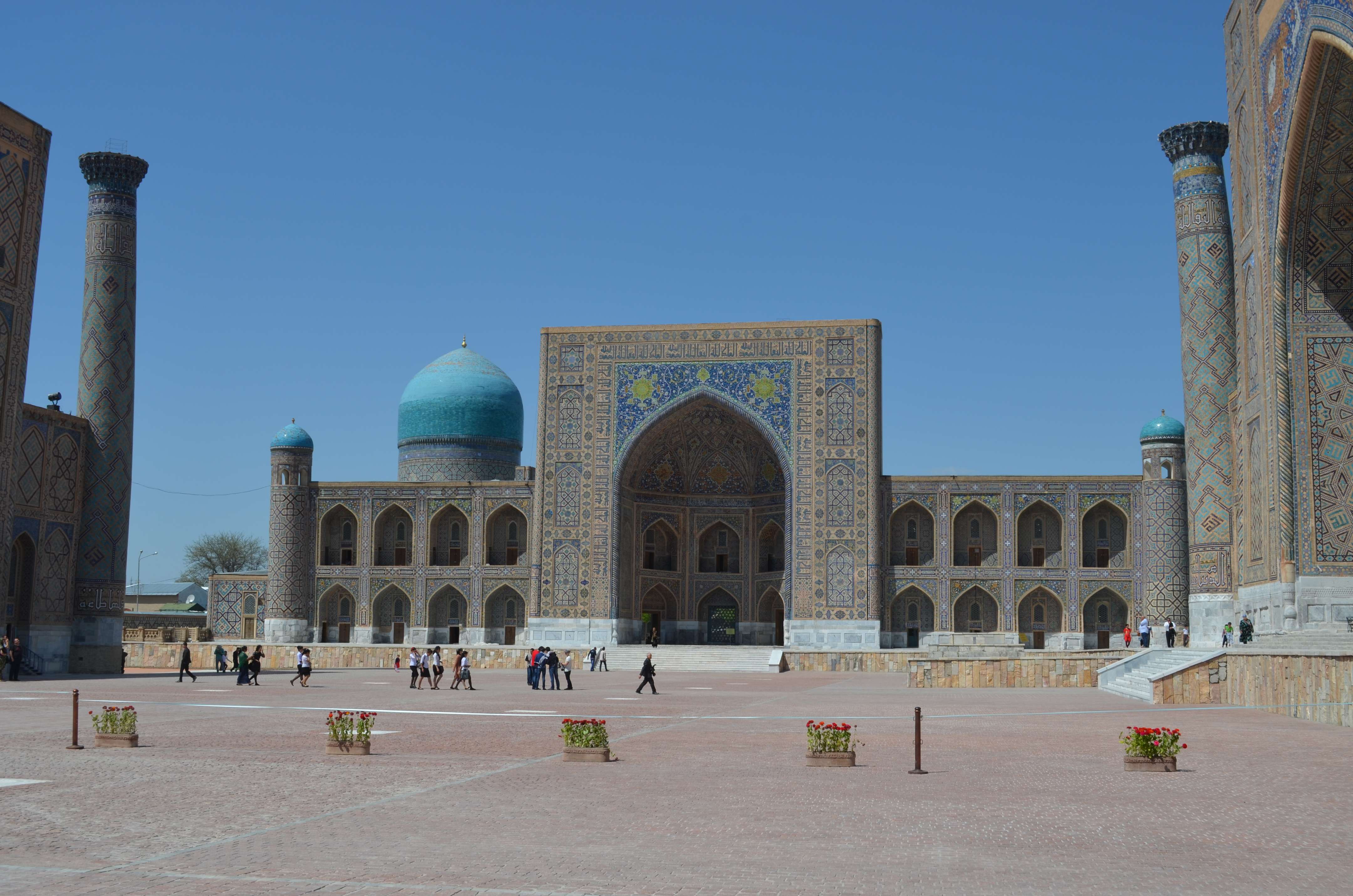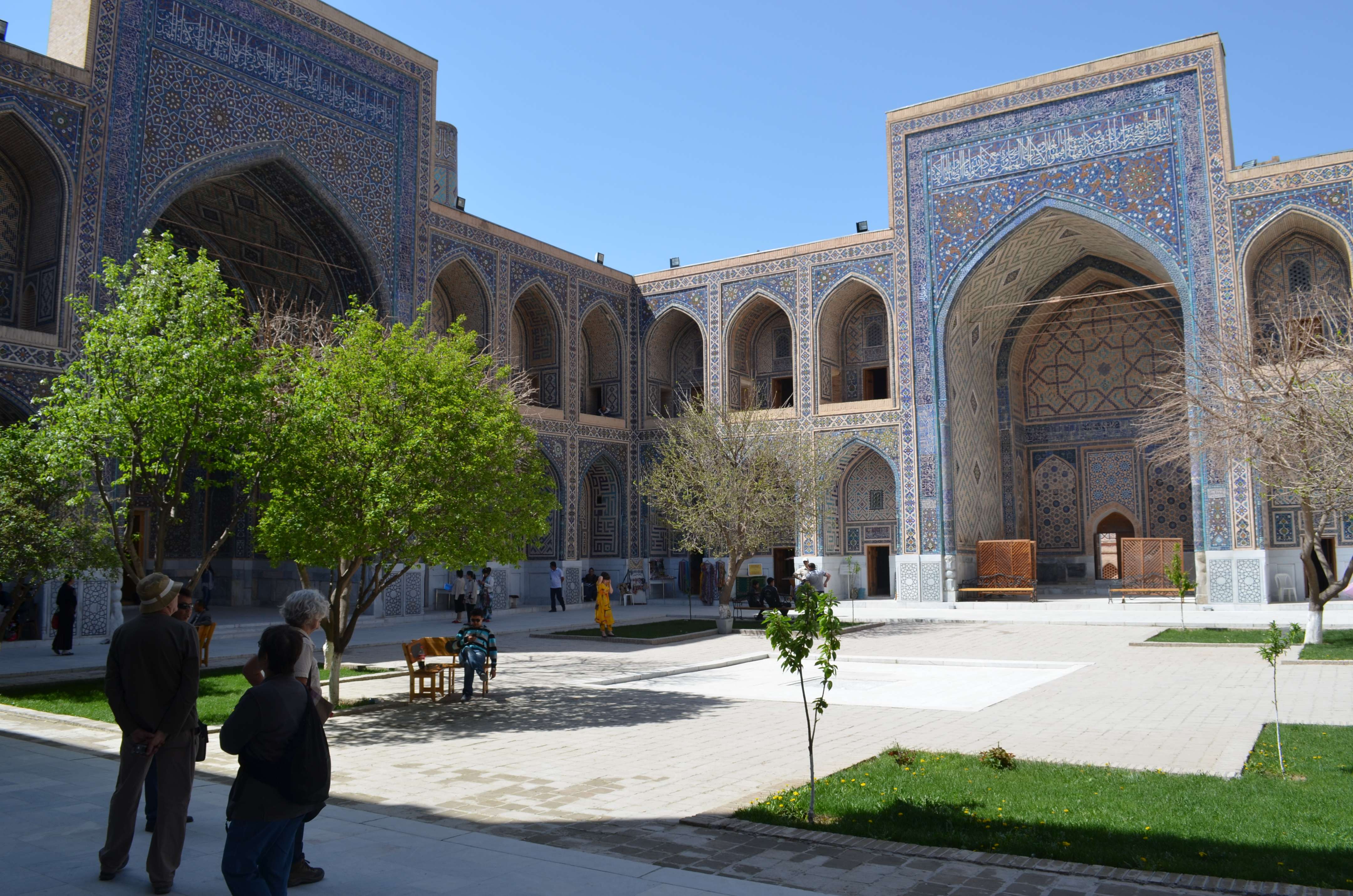 Direction le parking de l’université, situé derrière l’hôtel Afrasiab , aujourd’hui rebaptisé « Kuk Sarai» où nous avons rendez vous avec notre huide. C’est à  500m du Registan, cœur de la ville, endroit idéal pour la découvrir. Petit reconnaissance tranquille du centre ville l’après midi. En première impression, c’est bien la plus belle ville de la route de la soie.