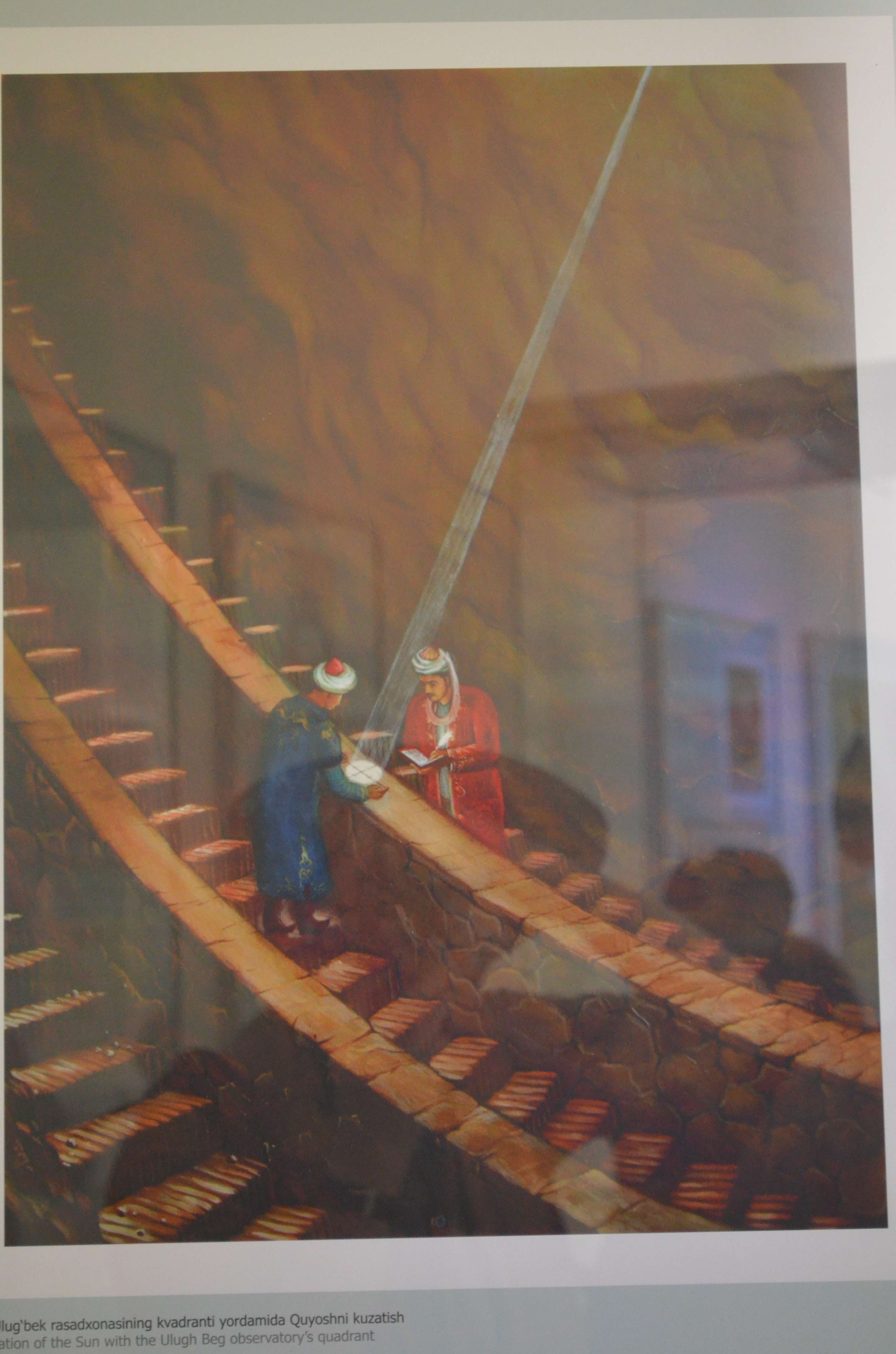 Le nouveau petit musée, qui jouxte l’observatoire d’Ulug Beg, petit fils de Timour, mérite la visite. Ne subsiste de l’observatoire, bâtit sur la colline la plus haute de la ville, que le support du gigantesque sextant qui en constituait l’instrument principal.