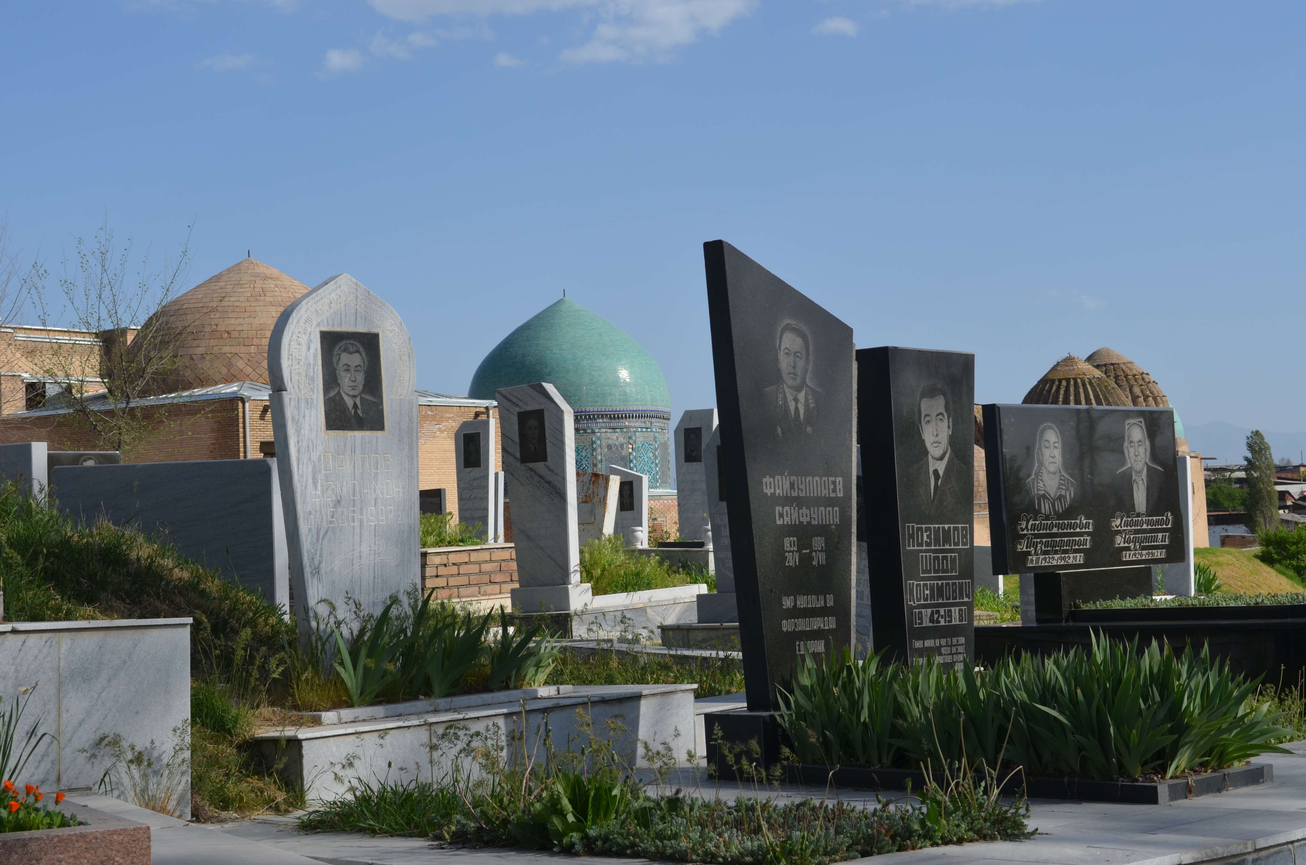 Dans les cimetières, les stèles de style soviétique, caractères cyrilliques et photos des défunts médaillés, voisinent avec les coupoles des mausolées musulmans.