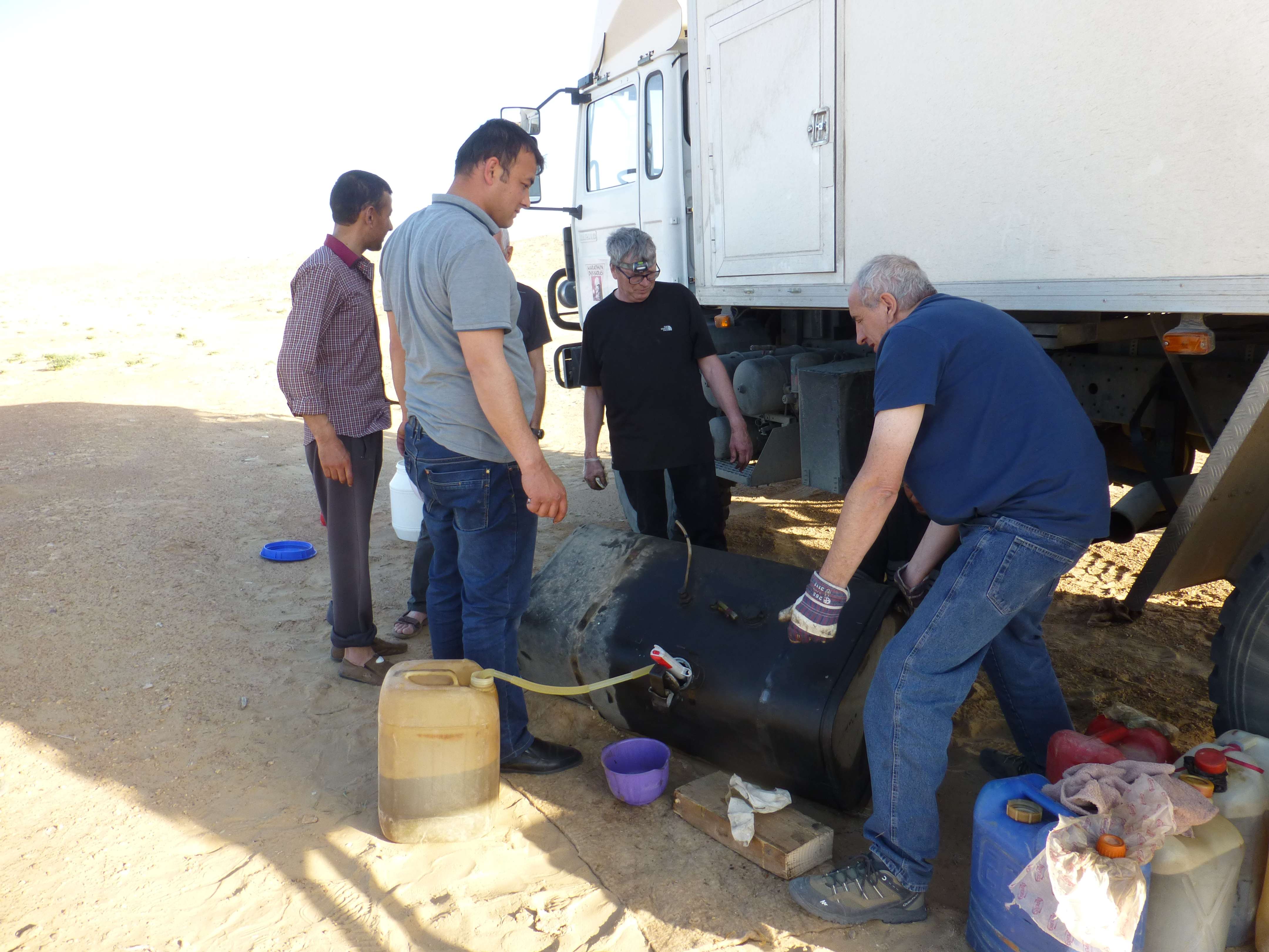 Plusieurs visites de voitures de police sur le parking, les agents se montrent serviables et curieux de notre périple. L’un d’eux nous fait comprendre qu’il est en charge de surveiller la zone et qu’on pourra dormir tranquilles… Puis petit rituel de remplissage des réservoirs au jerrycan, notre guide nous a trouvé un fournisseur à 3700 soum/l.