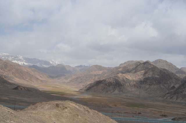Départ vers Kashgar par une excellente route, toute récente, qui emprunte la même vallée, semi désertique et encaissée dans un plateau d’argile, que l’ancienne route / piste dont l’état nous évite toute éventuelle nostalgie !