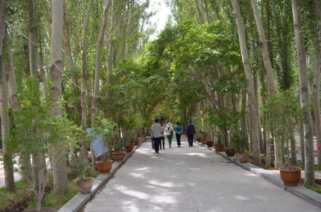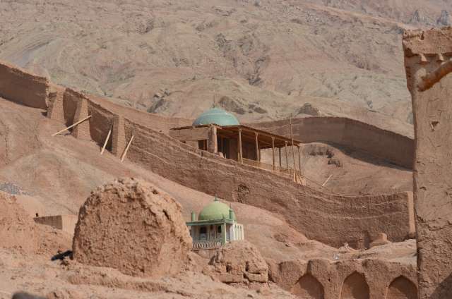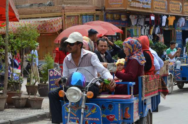 Le lendemain, après une longue et vaine attente pour obtenir des clés 3G et des cartes sim dans une boutique high tech aux vendeuses de même, nous visiterons, sur une hauteur, la vielle ville, ceinte de murailles d’argile. Elle est quasi totalement en reconstruction et nous comprendrons que c’est grâce à une volonté gouvernementale et la subvention de la moitié des travaux. Viendra ensuite la mosquée Idgah, construite au XV° siècle et sans intérêt architectural, mais dont l’intérieur, qui peut accueillir 20 000 fidèles, ressemble plus à un parc qu’à un édifice religieux.
