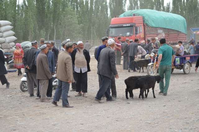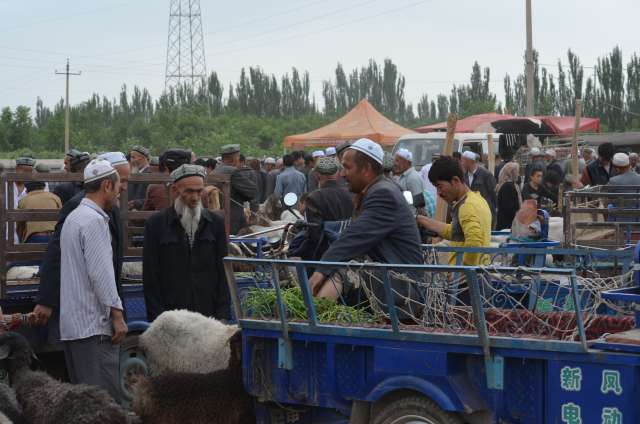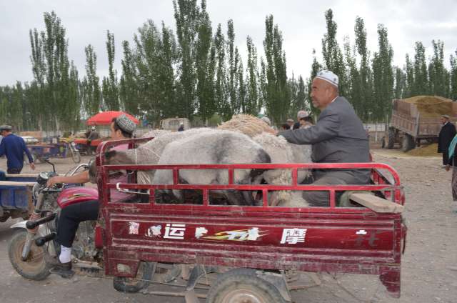 Nous passerons la journée du vendredi sous un soleil de plomb, au centre de contrôle technique situé à une 40 de km de Kashgar. Arrivés à 10h, nous serons englués dans la masse de véhicules de tous types qui viennent effectuer leurs visites périodiques. La présence de nos guides permettra de by passer quelques files d’attente mais nous ne couperons pas à l’inspection détaillée (recherche et décalque des N° de châssis, photos sous tous les angles, pesage, banc de freinage et contrôle des éclairages dans une installation très performante) Il nous faudra coller des bandes réfléchissantes sur les bords de caisse, (hors de prix, 8 yuan pièce et il nous en faudra 20) et une dizaine de stickers d’assurance sur le pare brise.