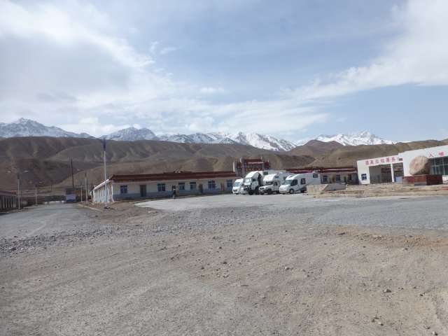 Inspection des véhicules, Guy se fait saisir sa carte IGN car elle attribue au Japon un ilot revendiqué par la Chine, (nous avons la même, elle échappera à l’autodafé), passage sous une rampe symbolique de désinfection, très longue attente et nous pouvons continuer vers Kasghar que nous atteindrons vers 20h30.