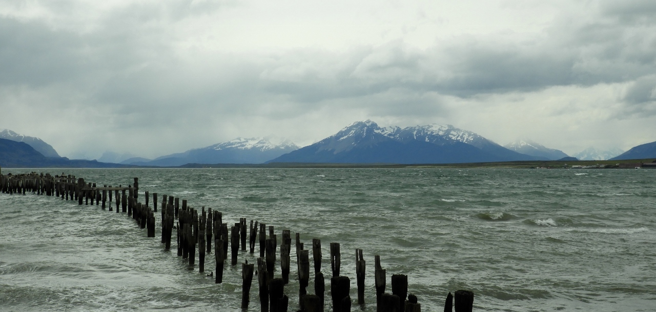 Nous prenons la route N°9 vers le nord, en direction du parc national Torres del Paine. Beaucoup de vent du nord tout le long de la route, et petite averse en arrivant à Puerto Natales, étape obligée sur les rives du seno Ultima Esperanza (Dernier espoir…)