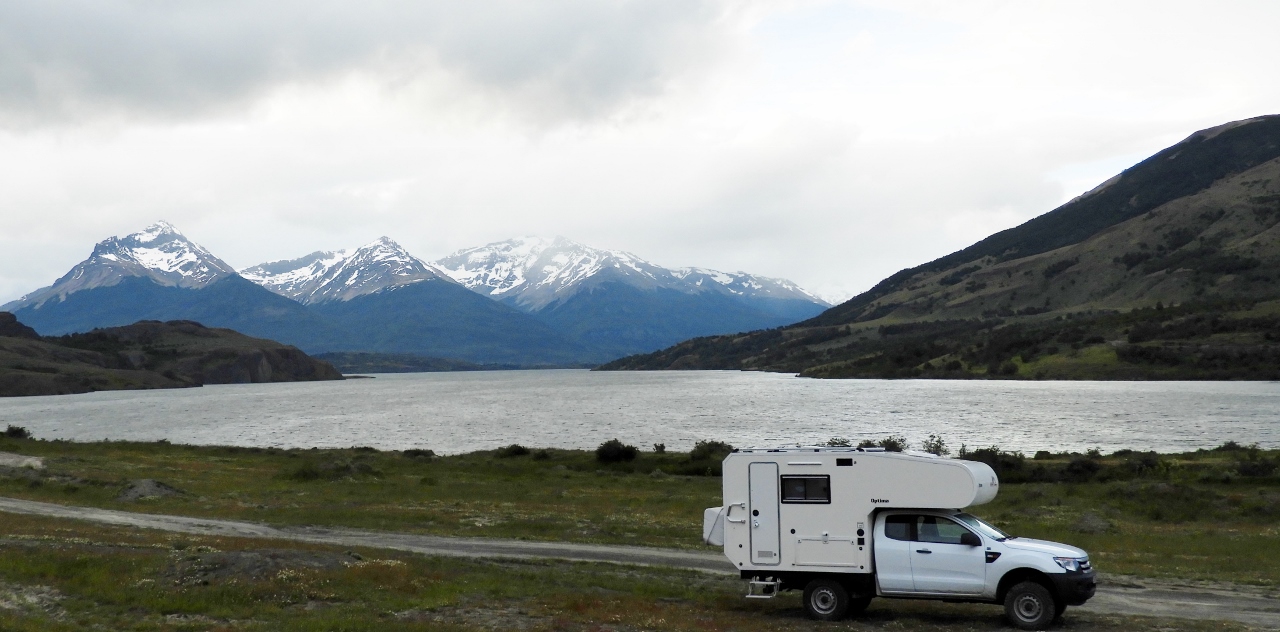 Bivouac à une trentaine de km à l’écart de la route de Torres del Paine, au bord de Laguna Sofia, dans un très beau paysage. (copyright JB&JB)