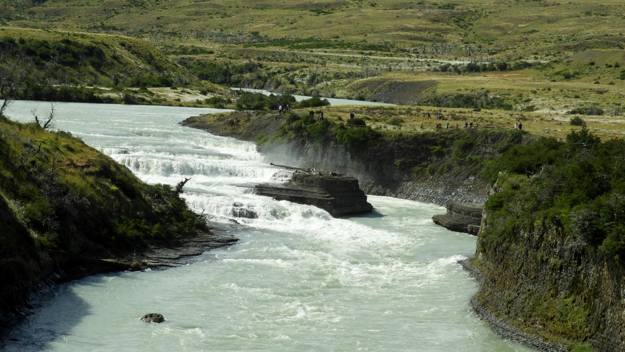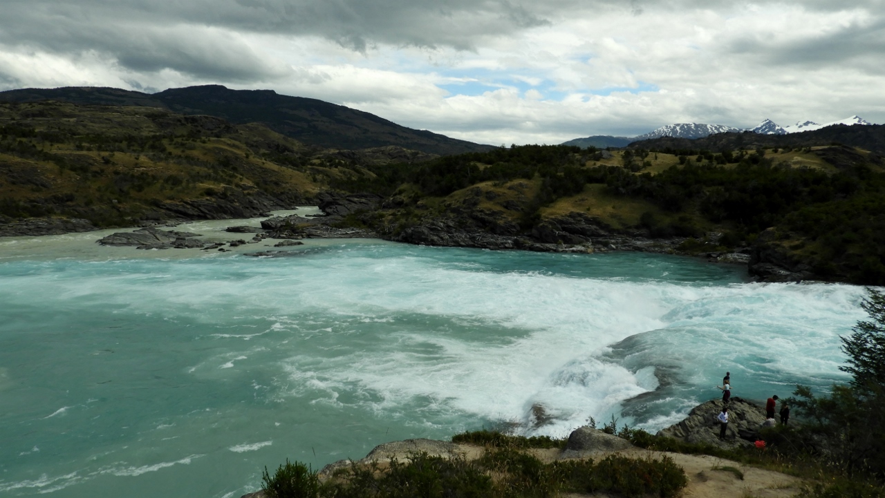 On se rabat sur une ballade en voiture jusqu’à Laguna Azul, via la Porteria Laguna Amarga. Le temps se dégage rapidement et nous permet une halte face aux cascades du rio Paine.