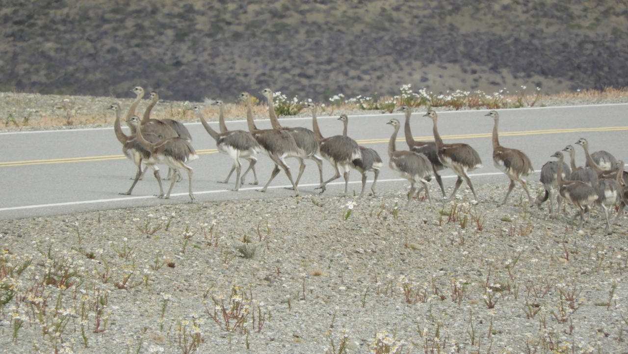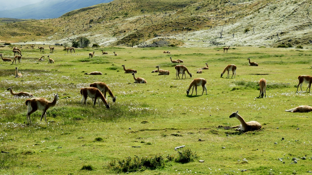 Dans cette partie du parc, de très nombreuses hardes de guanacos, par centaines.