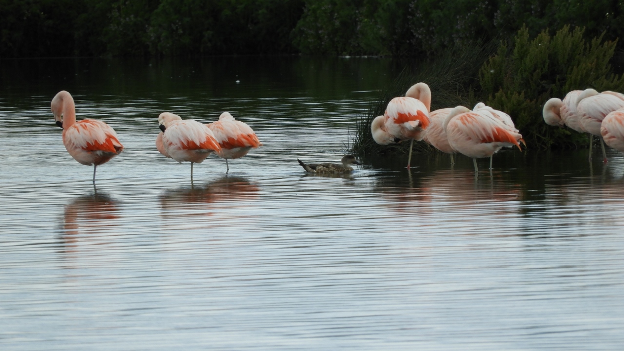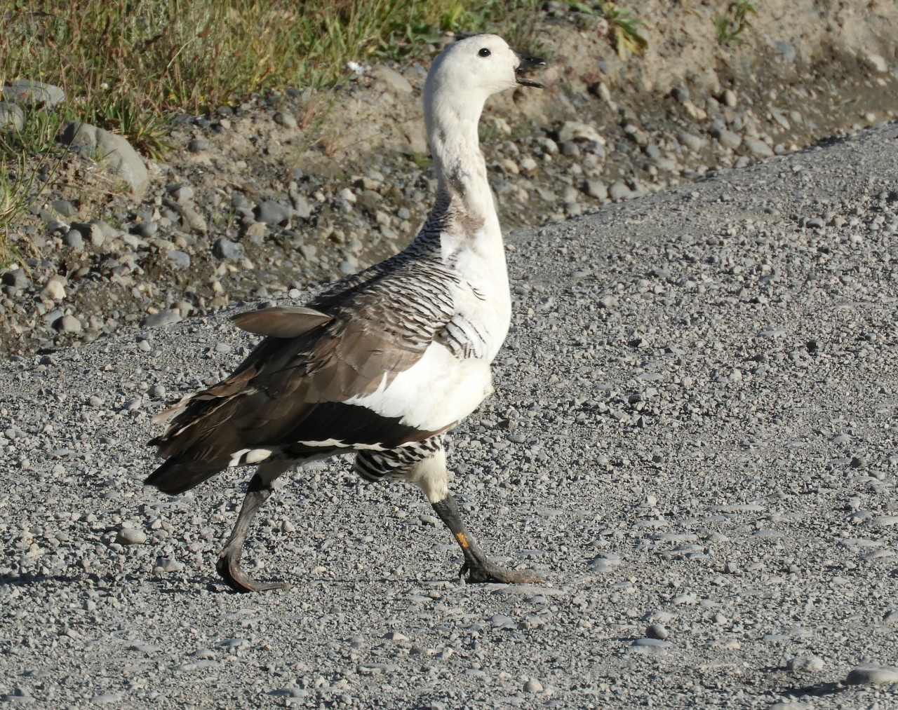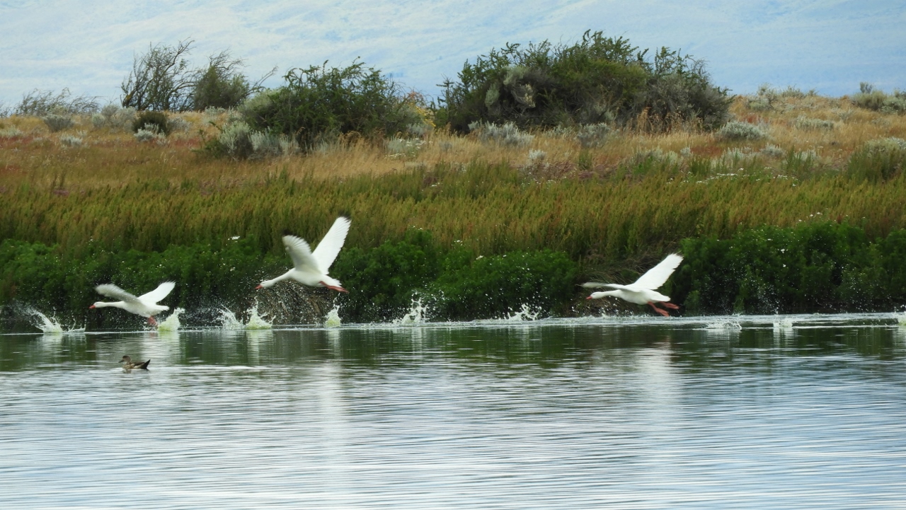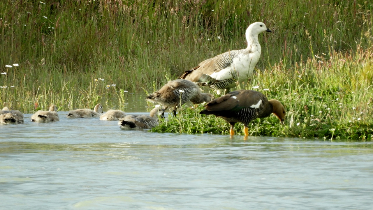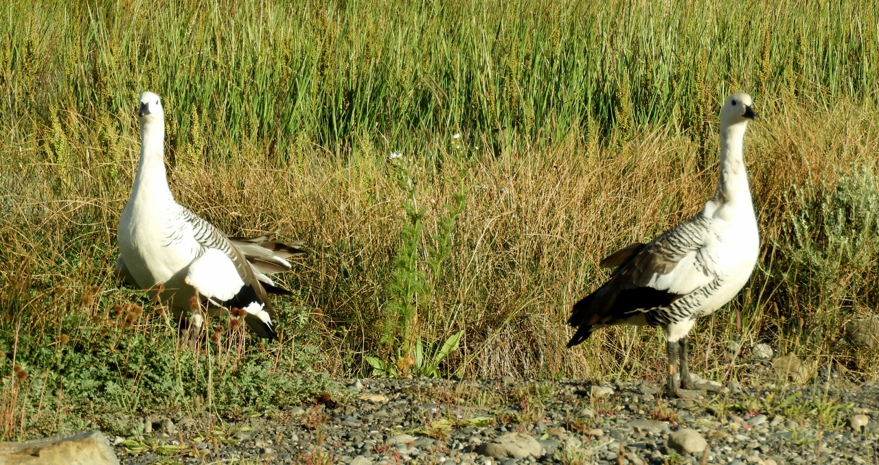 Retour pour le bivouac auprès du pont de bois, Porteria Laguna Amarga, pour assister aux bouderies des oies Caucen « comun ». Les mâles, blancs, s’affrontent, (j’ai loupé la photo…), puis se traitent par le mépris en se tournant le dos, avant de rejoindre leur petite famille.