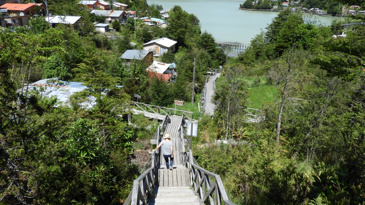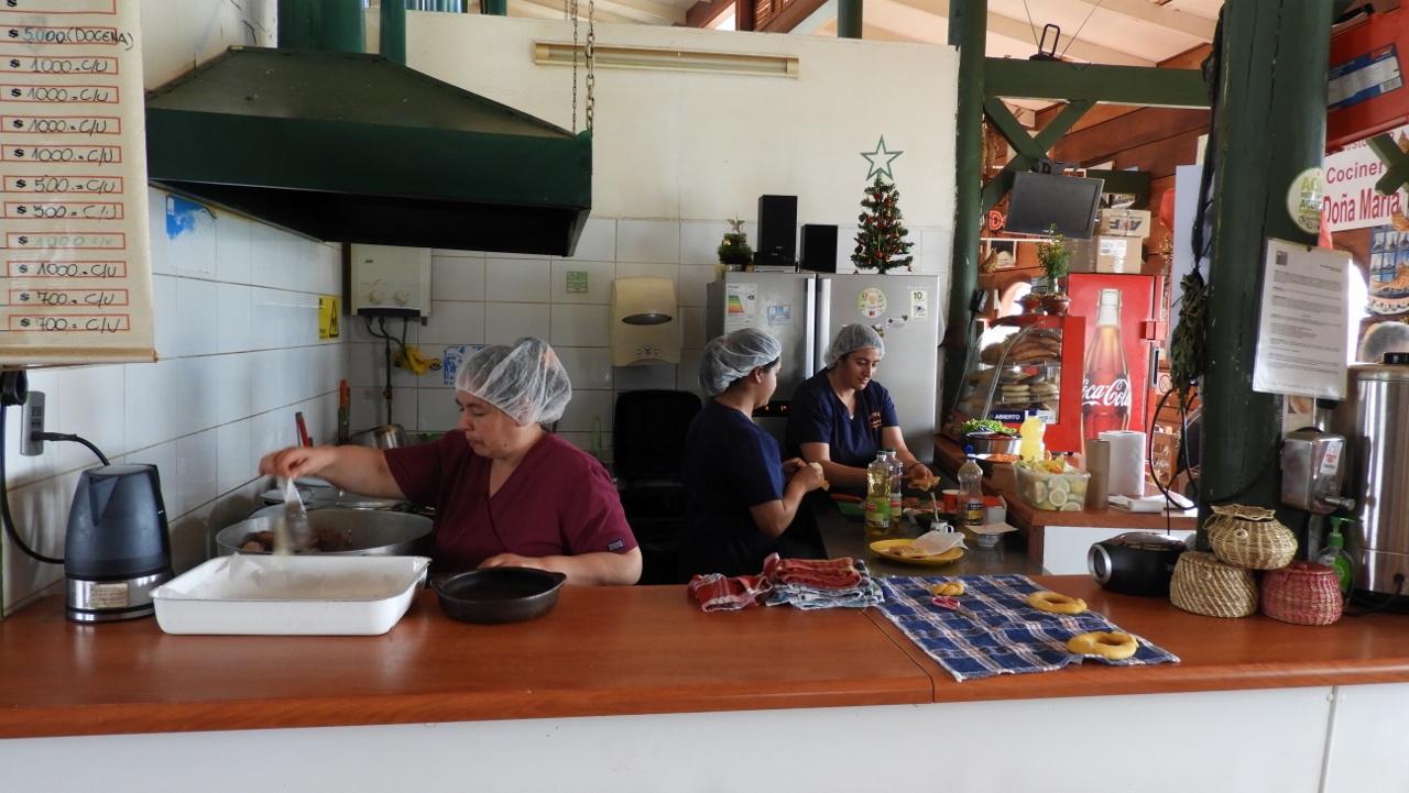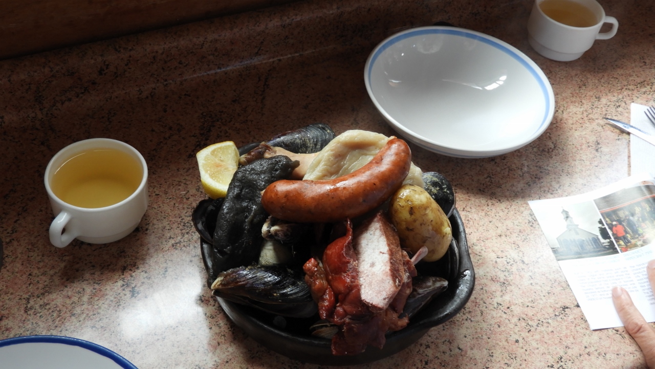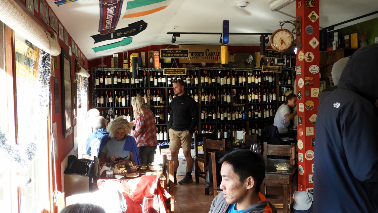 Punta Arenas, 8h. Cambuse vide, nous nous contenterons d’un café au lever avant de trouver, avantage de la grande ville, un café, où prendre notre petit déjeuner. Bistrot sympa, chocolat parfait, toasts à point et internet en prime, ça nous met d’attaque pour les courses. Dans la zone franche, les rayons des super marchés sont dégarnis après le rush de Noël, mais les prix n’ont pas encore été réajustés après les promotions pour le réveillon. Nous y ferons le plein de biscuits Destrooper et de chocolat Lindt, fabriqué en France (un peu de patriotisme économique à bon compte..) Au Mercado, près du môle d’amarrage des navires de croisière, beaucoup de stands fermés mais nous trouverons quand même du saumon, du congre et des ceviche variés, qui nous rappelleront ceux que nous avions dégusté avec nos filles à Playa del Carmen il y a quelques années.