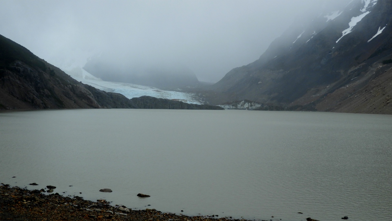 Nous attaquons la montée de la randonnée menant au Mirador Torres. Raide, caillouteuse et aussi fréquentée que le tour du Mont Blanc (qu’on n’a jamais fait, mais on en a entendu causer..). Les genoux couinent, les godasses sont trop serrées pour nos pieds sensibles, souvenirs de la rando de jeudi et les Torres sont dans le brouillard, on arrête donc au col avant le refuge Chileno.