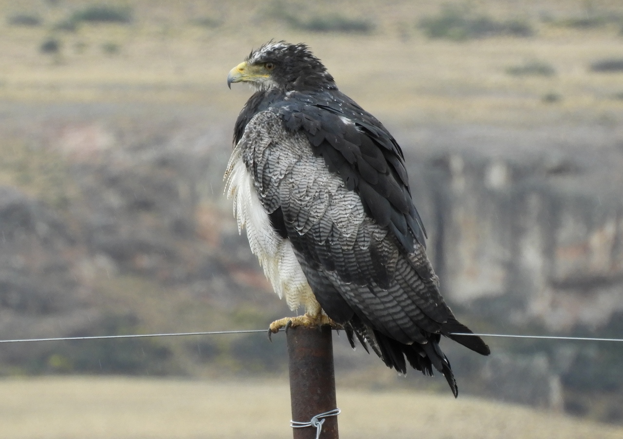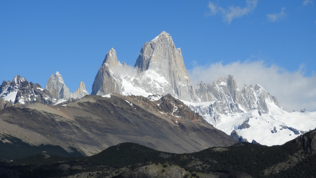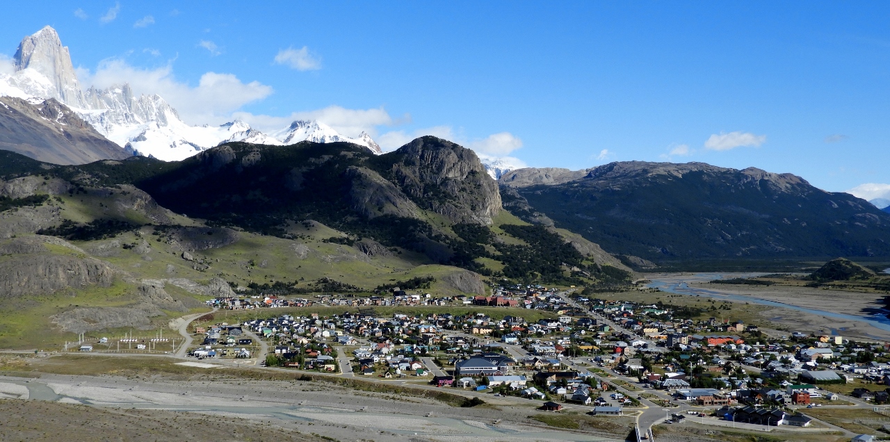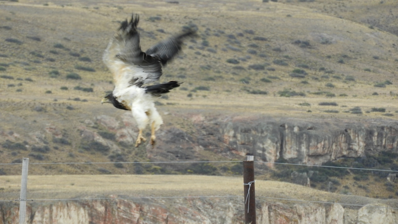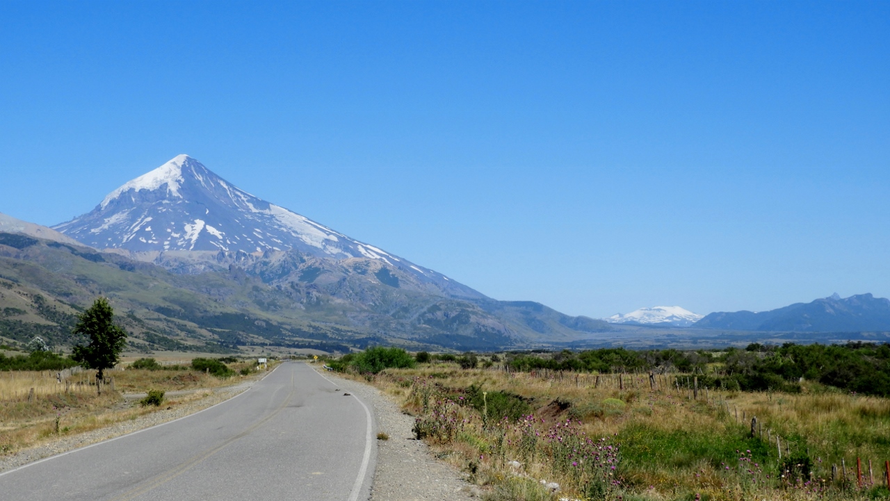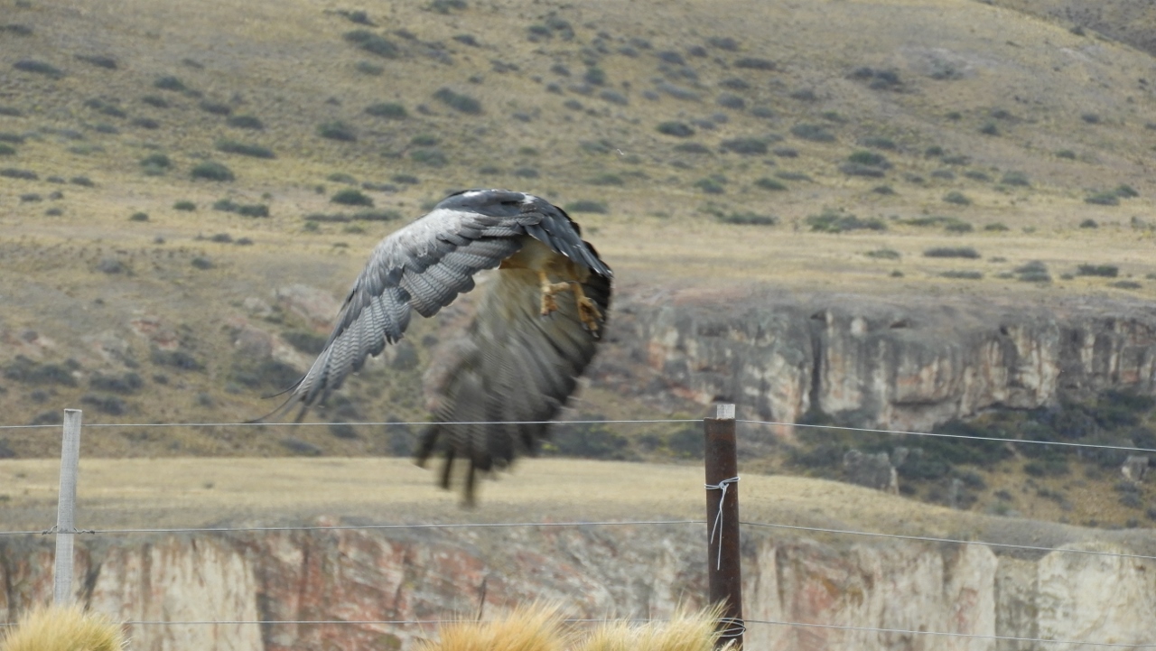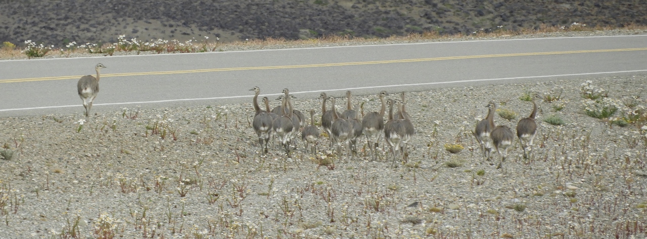 On quitte le parc, et bientôt l’Argentine : Il n’y a pas de route vers le nord côté Chili et la route des glaciers passe par El Calafate. Le poste frontière chilien est à Cerro Castillo, passage en 3mn. Petite séquence comique 15 km plus loin : un beau panneau proclamant « Benvenudo en Argentina » est implanté à l’endroit où le goudron cesse, remplacé par un vilain ripio.. Il est vrai que cette route est peu fréquentée et les formalités au poste frontière argentin rapidement expédiées, même si il nous fallu patienter derrière les passagers d’un bus.