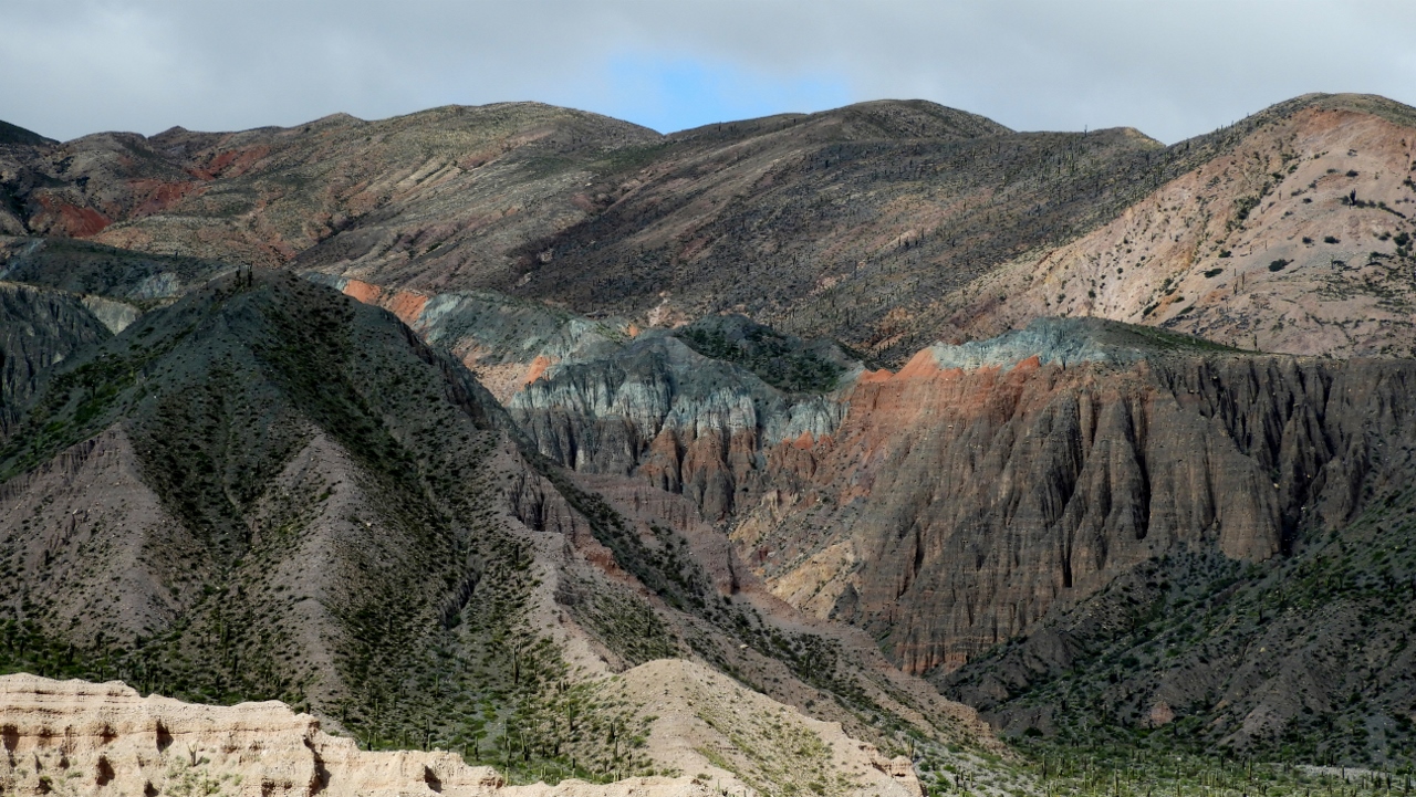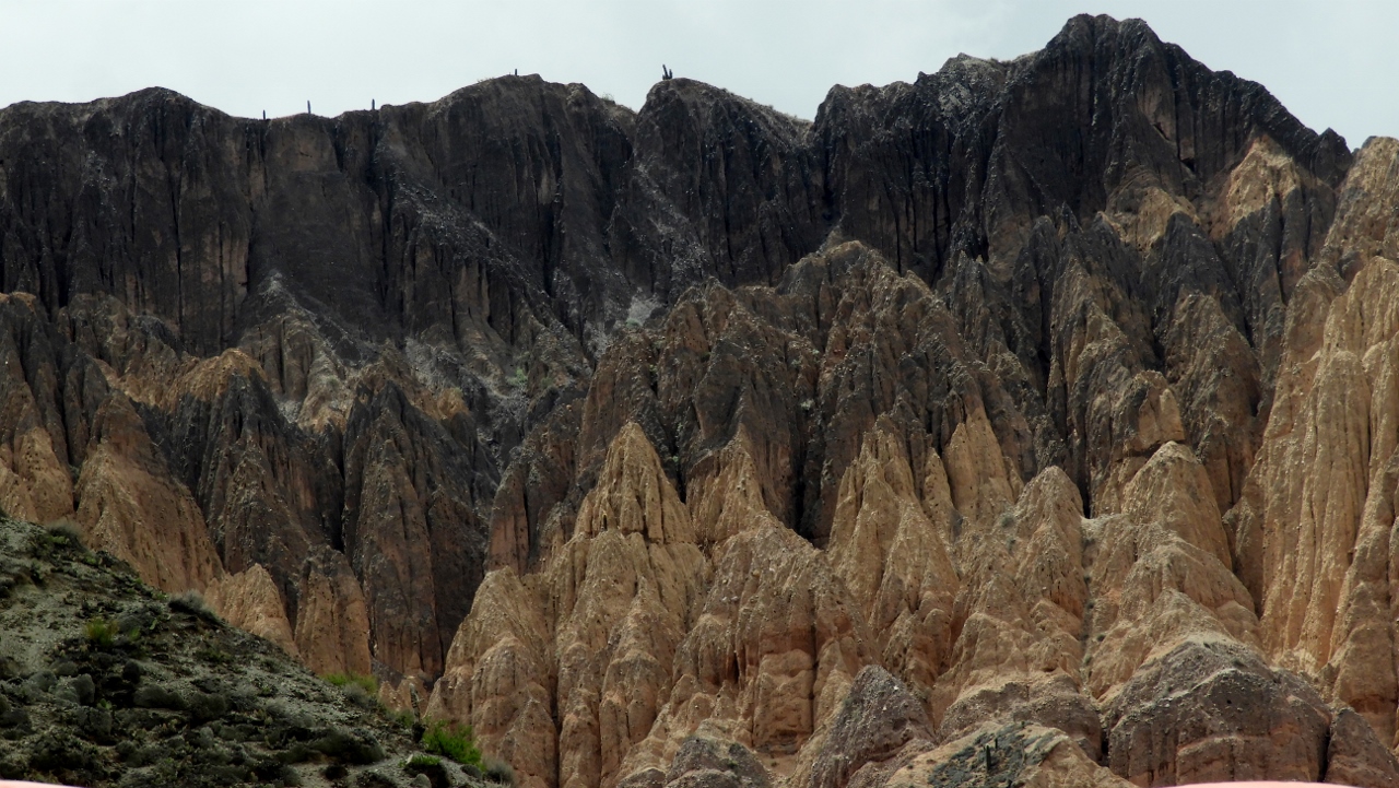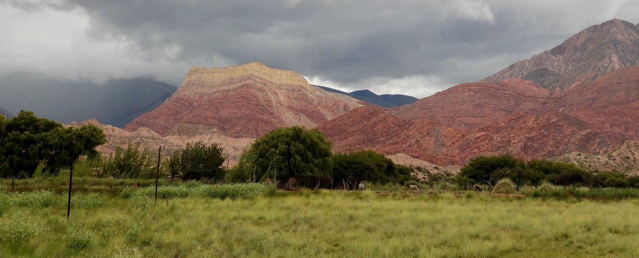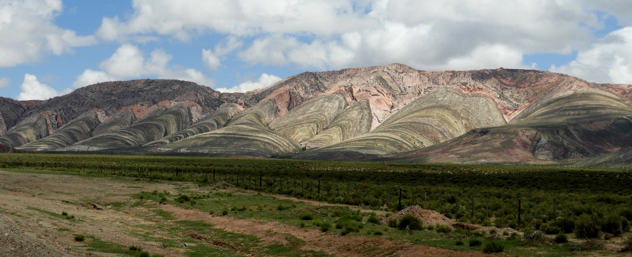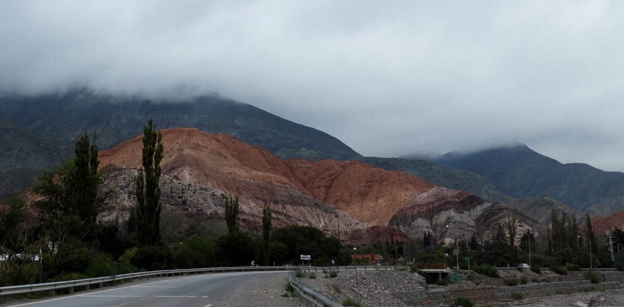 Nous quittons Salta par la route N°9, très jolie route de montagne dans une forêt touffue, mais étroite et aux croisements difficiles. Une halte à Jujuy, prononcer Coucouille (François, abstiens toi de commenter) pour nous approvisionner et nous prenons la route qui emprunte la Quebrada de Humahuaca, vers le nord, longue faille dans laquelle s’écoule le rio Grande de Jujuy. Les paysages seront superbes tout le long de la montée.