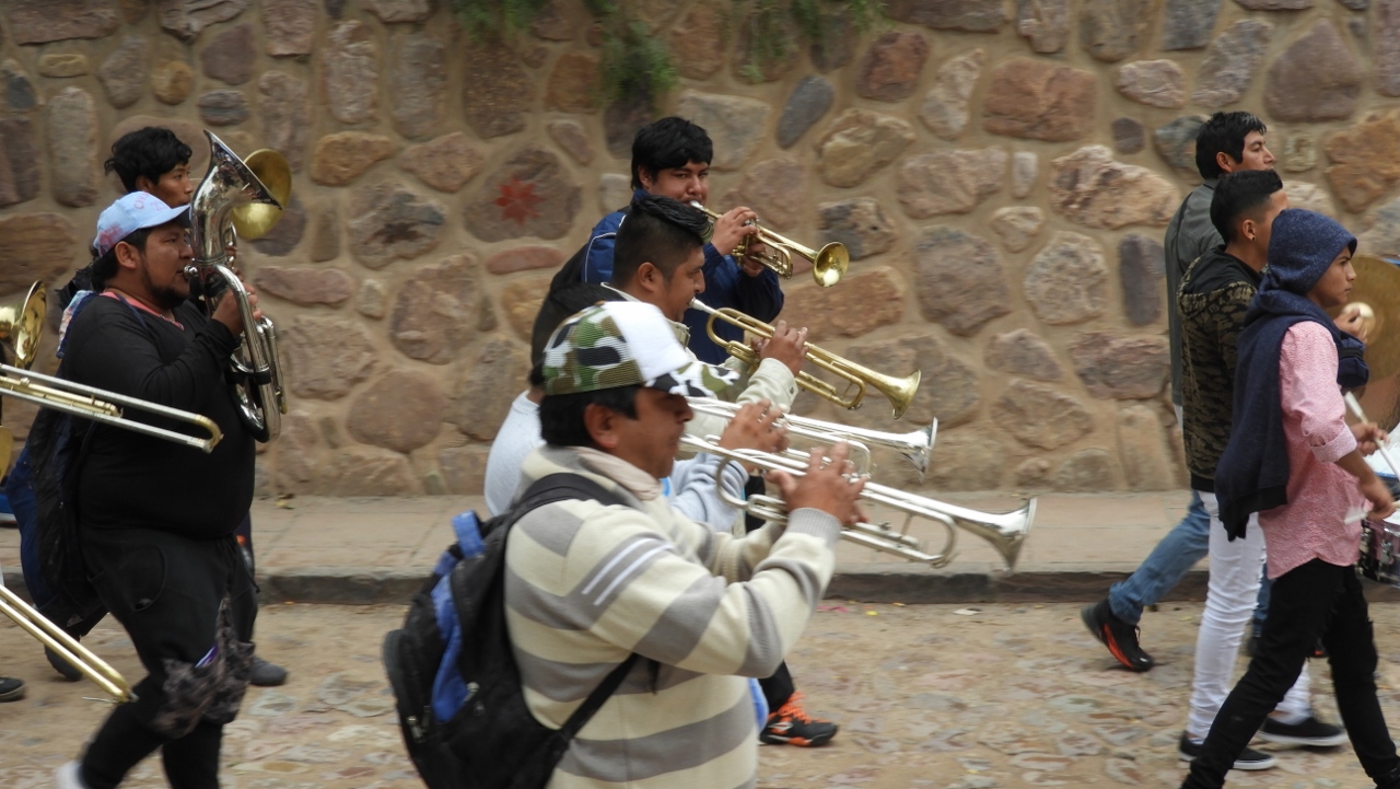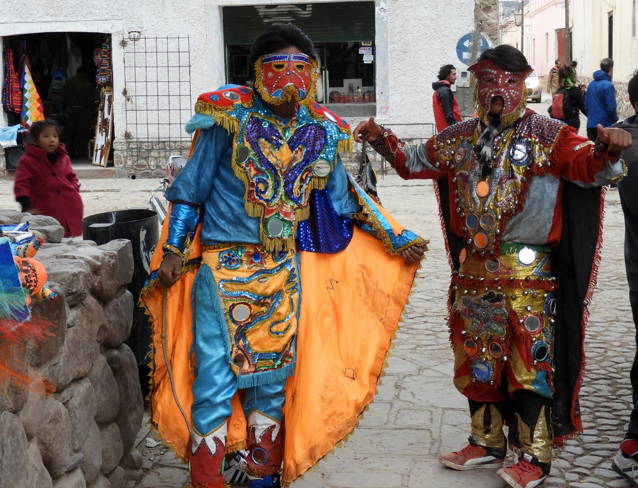 Humahuaca est en fête, comme dans tous les villages de la région, c’est carnaval. Nous assisterons au cortège. En résumé, ça ressemble fort dans son principe, à « la bande à Malo » (les cht’is comprendront) : des jeunes déguisés, une fanfare, et on fait le tour du village.