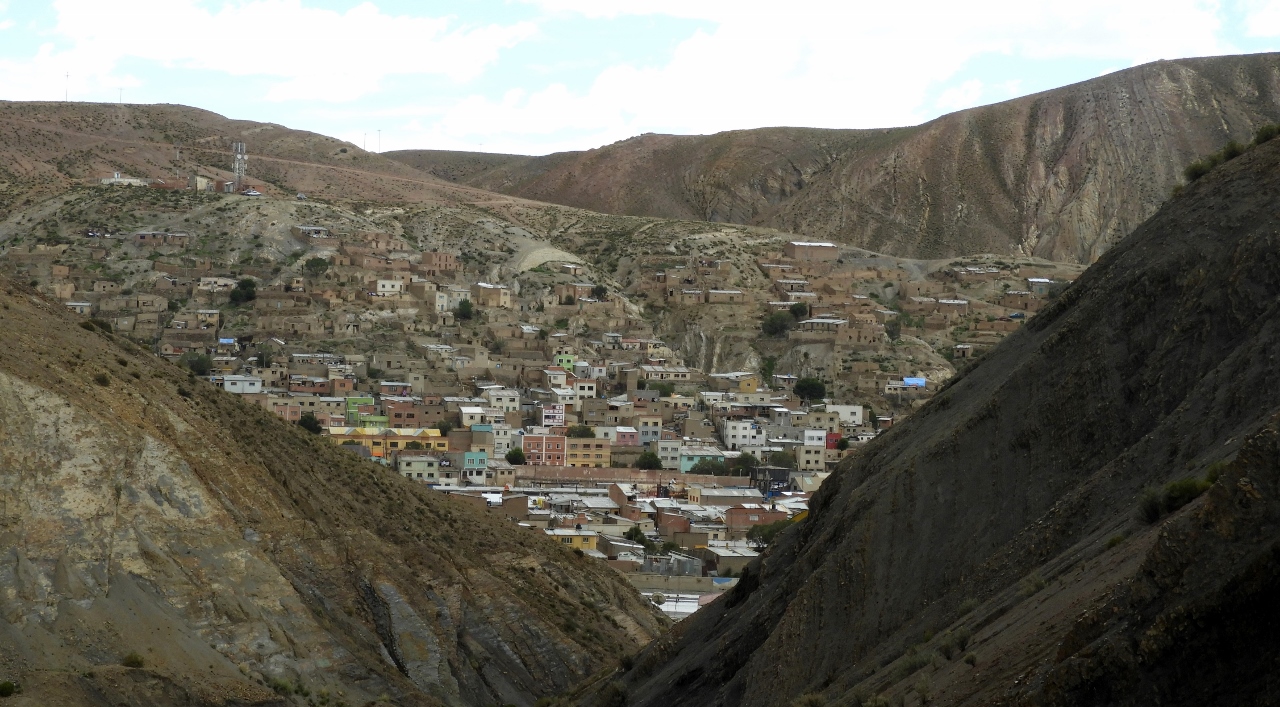 Cela ne sera pas tout à fait exact, il reste des zones en chantiers sur une vingtaine de km, mais la roule s’avèrera superbe, large ruban de goudron passant de col en col à plus de 4200m. Chapeau aux entreprises de TP boliviennes qui ont taillé une telle route dans un environnement aussi difficile, avec parfois, au détour d’une épingle, un village.