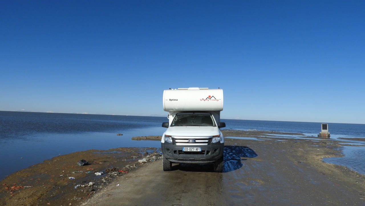 Puis mauvaise piste sur 10km, et …un lac, le salar est sous l’eau.