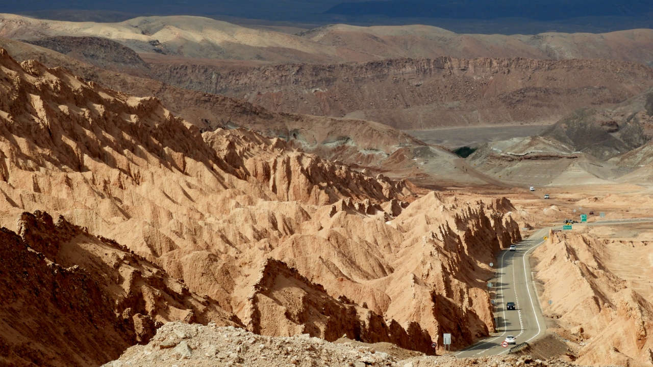 Poursuivant vers le sud, nous dévalerons du plateau, à 3600m d’altitude vers la dépression de San Pedro de Atacama, à 2600m, par une descente de 6km …
