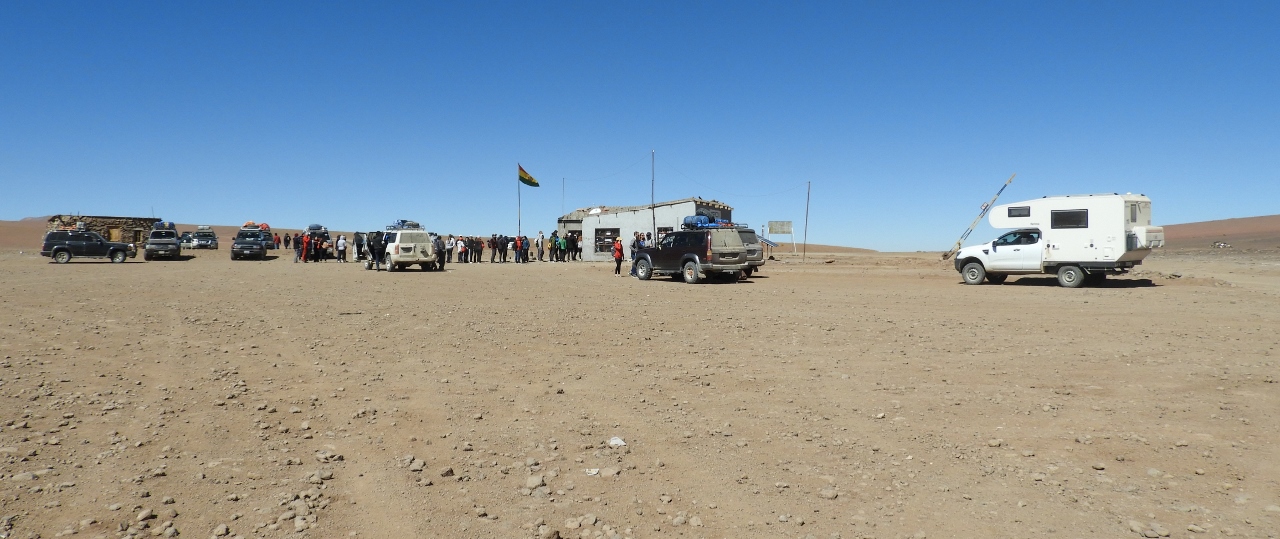 Bien qu’isolés à plus de 100km de la 1° agglomération et à 4000m d’altitude, ces postes sont équipés : une jeune voyageuse d’un bus, souffrant manifestement du mal des montagnes, recevra des soins devant nous d’un binôme « paramedic » très professionnel, alors que nous croiserons une ambulance quelques instants plus tard, en quittant la frontière.