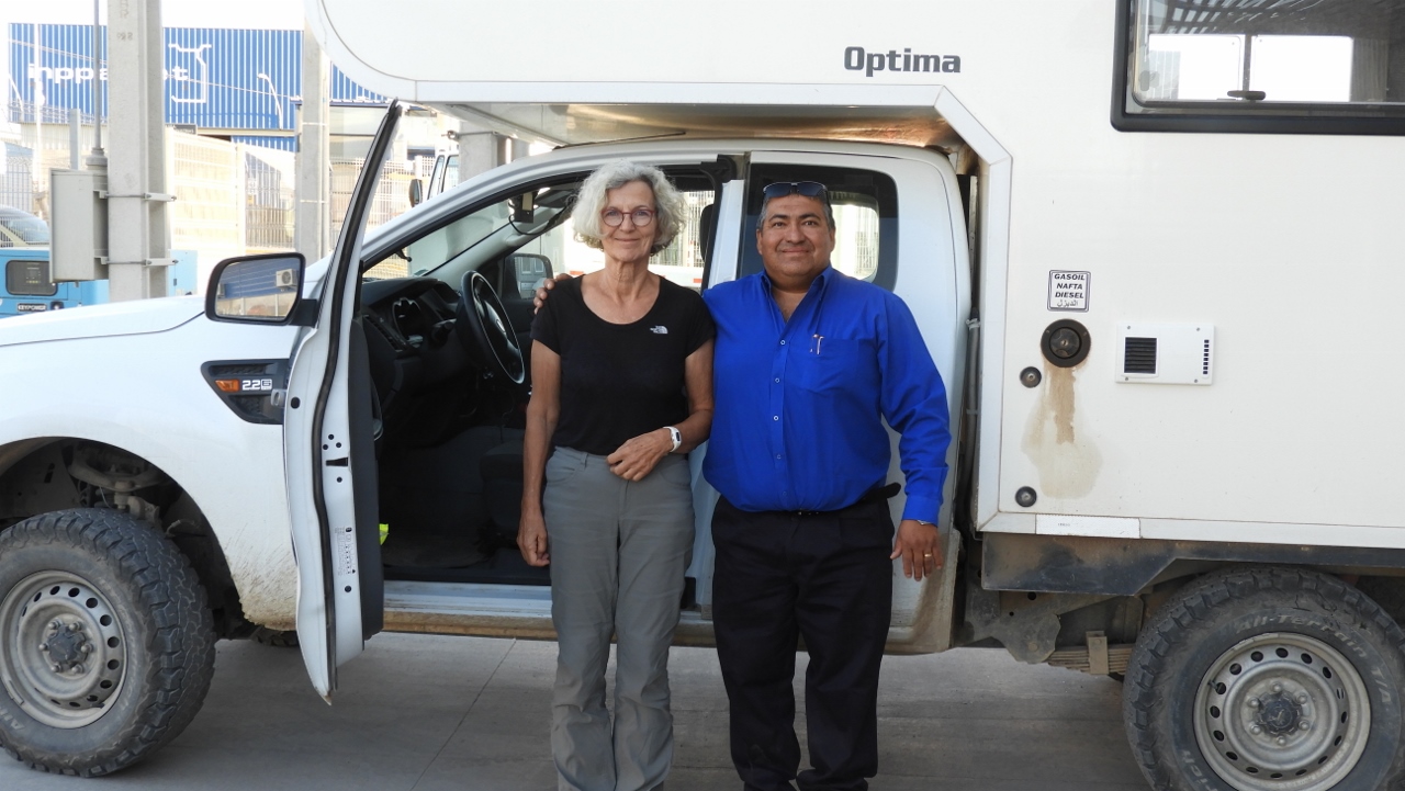 La préposée SAG, charmante au demeurant, ne nous épargnera rien, nous fera ouvrir placards, coffres, soute, coffre extérieur, inspectera minutieusement la cabine et saisira des raisins secs et des amandes. Les amandes avaient pourtant survécu aux 5 passages précédents de frontières chiliennes… Elle nous fera même choquer un par un les 6 œufs qu’on lui annonce cuits, afin de s’assurer que nous n’essayons pas de la rouler. Et, pour la 1° fois, nous ouvrirons le coffre extérieur, vite refermé tellement il est plein de poussière..