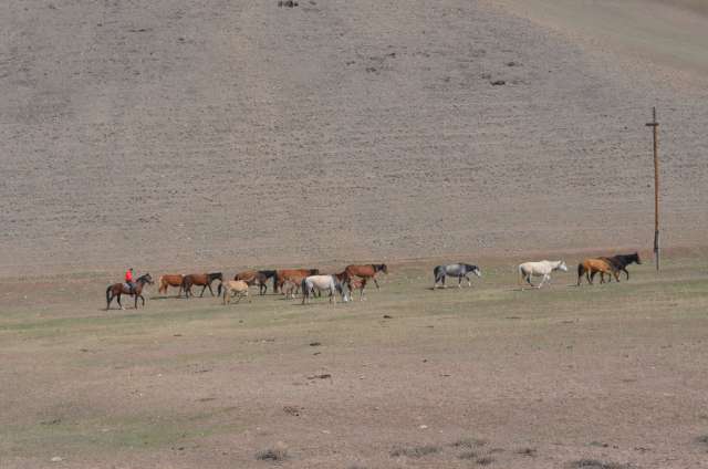Autoroute sans problème, entre désert et montagne, mais maintenant les montagnes sont au sud et le désert, c’est le début du Gobi, au nord.