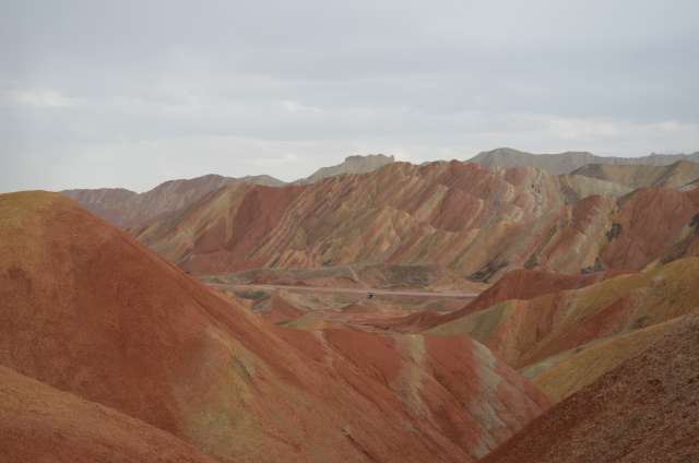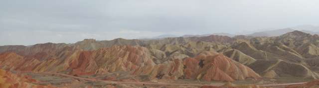 Bivouac sur le parking du « Geopark » de Zhangye, et visite de ce site où l’érosion a formé dans les couches teintées d’oxydes de fer ocres, rouges, rosés, de magnifiques compositions.