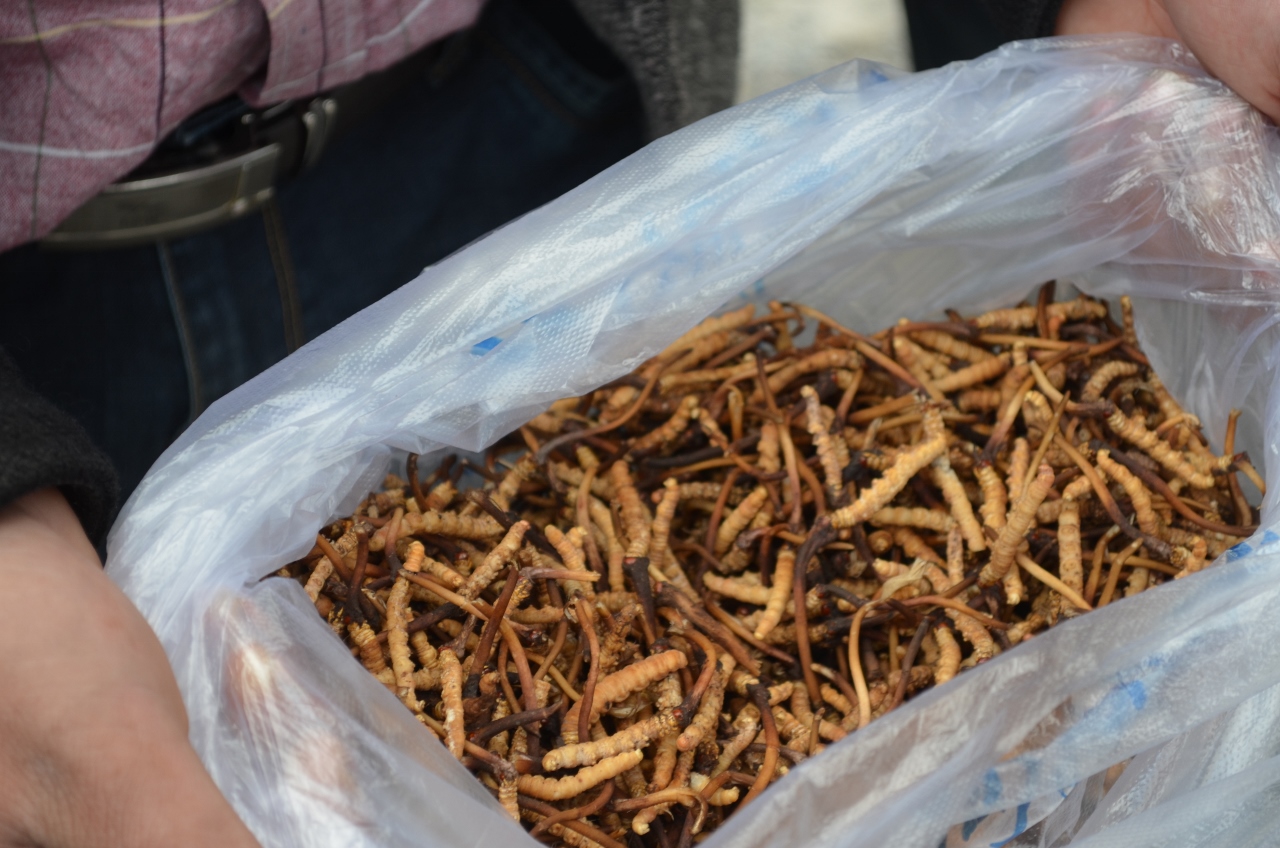 Passage de col à près de 3800m puis, dans la descente, arrêt auprès du campement de fortune où s’abritent les cueilleurs de médicaments. Leur prix en est astronomique, une des plantes que l’on nous proposera  coûte plus de  1.5€ pièce. Vertus garanties contre le cancer.