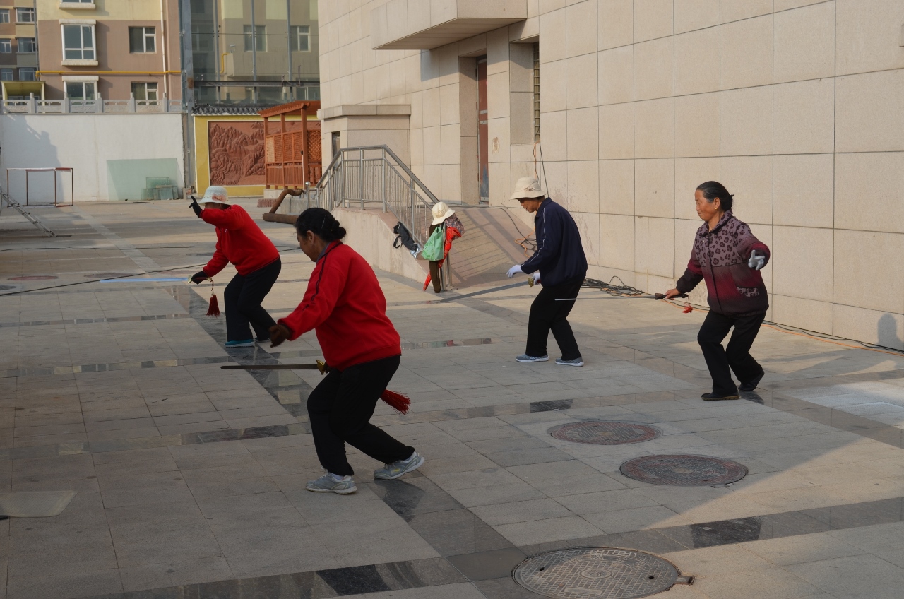 Réveil avec la musique de la gymnastique matinale. Pratiquée partout, tôt et longtemps.