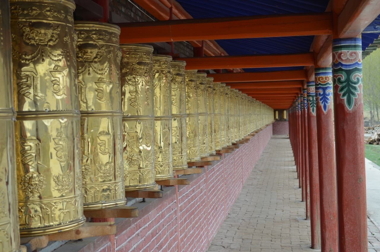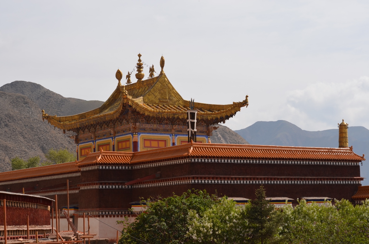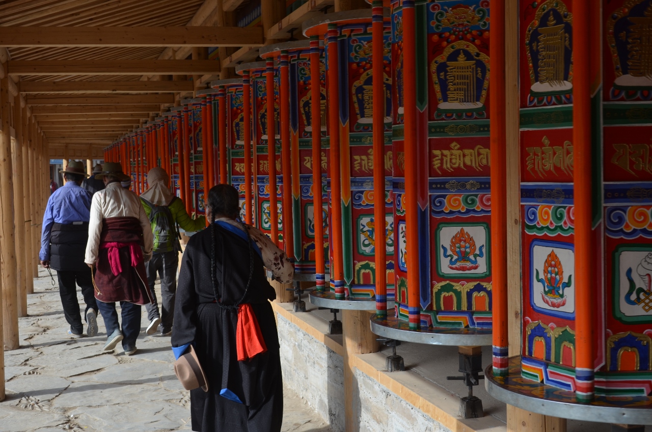 Nous continuons le saute moutons sur le plateau tibétain, de col en col. Dans une descente, le monastère de Juashize révèle, en bord de route, ses somptueux moulins à prière. Sur les plateaux, abondance de yacks et de moutons, le long des rivières, des colonies de marmottes s’égayent à notre passage.
