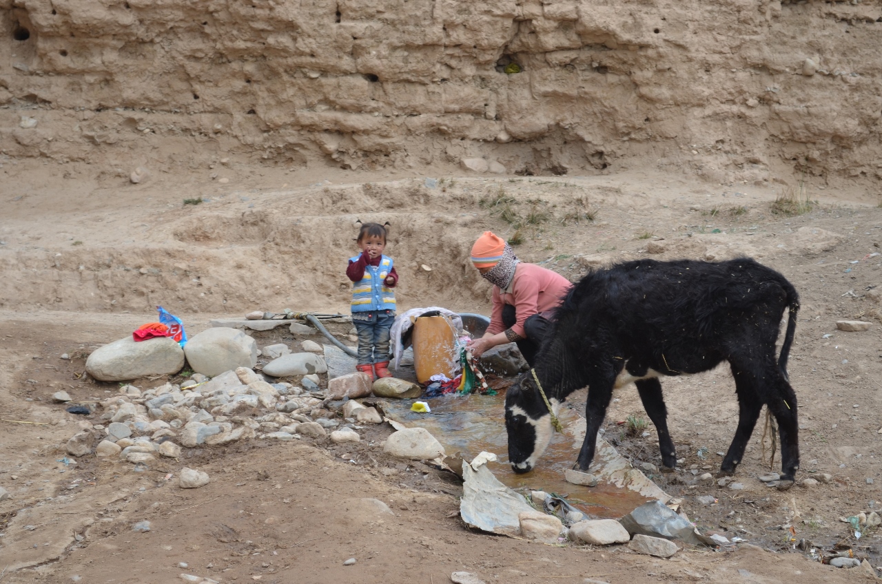 Petit détour pour aller visite la ville de Can Jia Bajiao, fondée il y a 2000 ans par une dynastie Han sur un plateau. Entourée d’une double muraille d’adobe, elle abrite encore une population de 350 familles. La vie y est bien dure, au milieu de nulle part. Deux points d’eau, hors enceinte, pour tout le village.