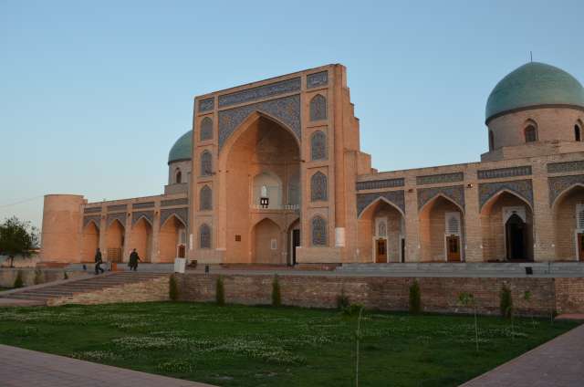 Nuit à Kokand, dans un petit parc après une promenade dans la ville où malheureusement le palais du Kahn est fermé, vu l’heure, et où nous nous contenterons de la medersa Narbutabey.