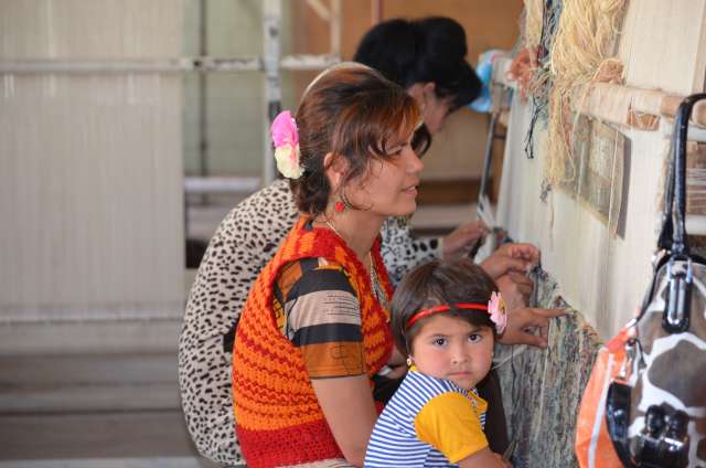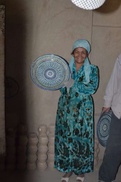 Etape touristique avec visites d’ateliers de céramiques à Rishtan et de la fabrique de soieries Yodgorlik à Margilan        ( N 40° 28.518’ E 71° 42.995’) On y pratique le traitement des cocons, le filage, la teinture puis le tissage, traditionnel ou mécanique, et la fabrication de tapis. L’activité semble malheureusement en déclin, moins de 10% des métiers mécaniques étant en production, et un grand nombre hors d’état.