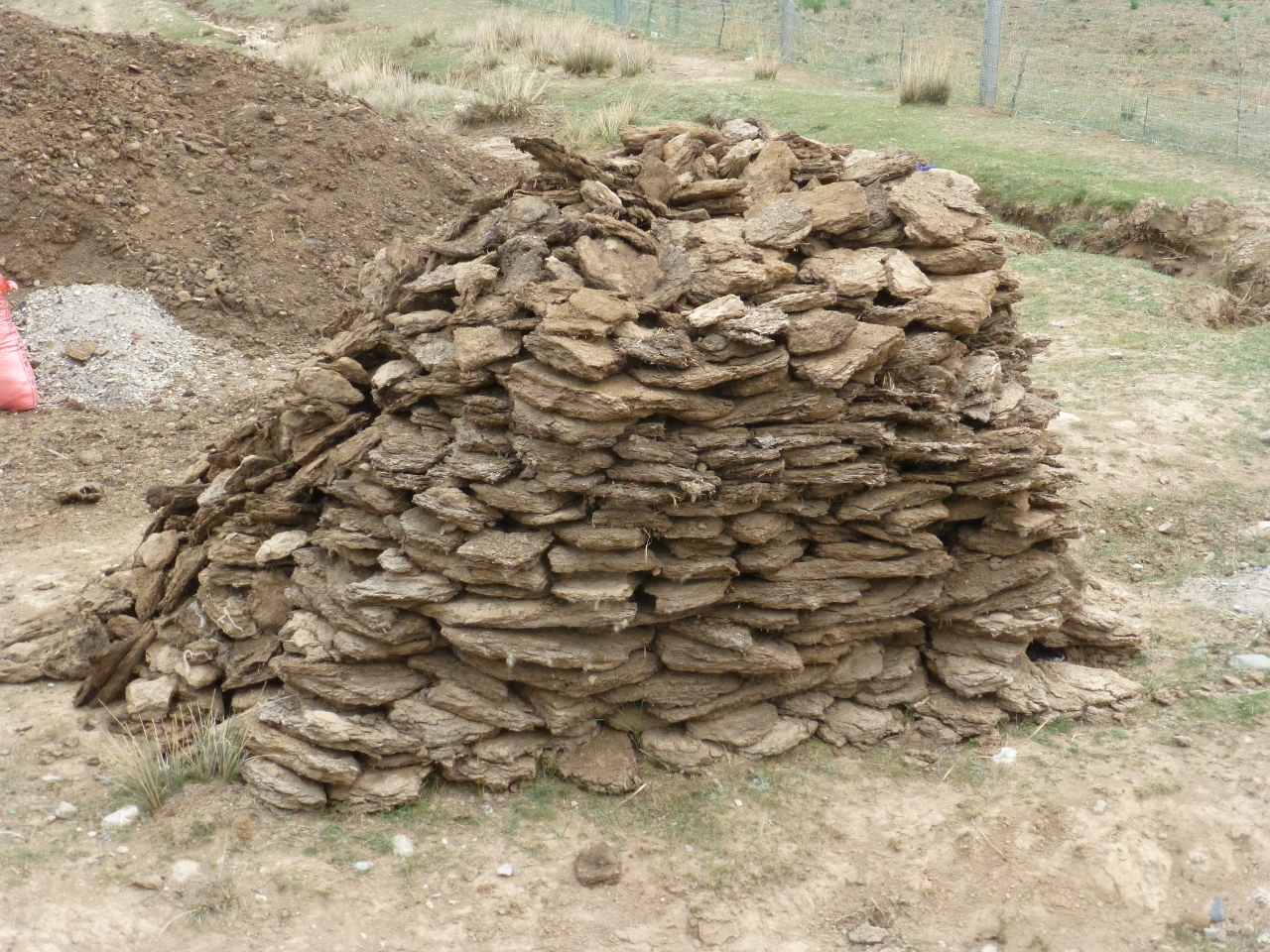 Nous reprenons la route, devenue routine : Cols à 3600m, plateaux à 3400, yacks, villages avec leur tas de combustible : Des bouses de yacks.