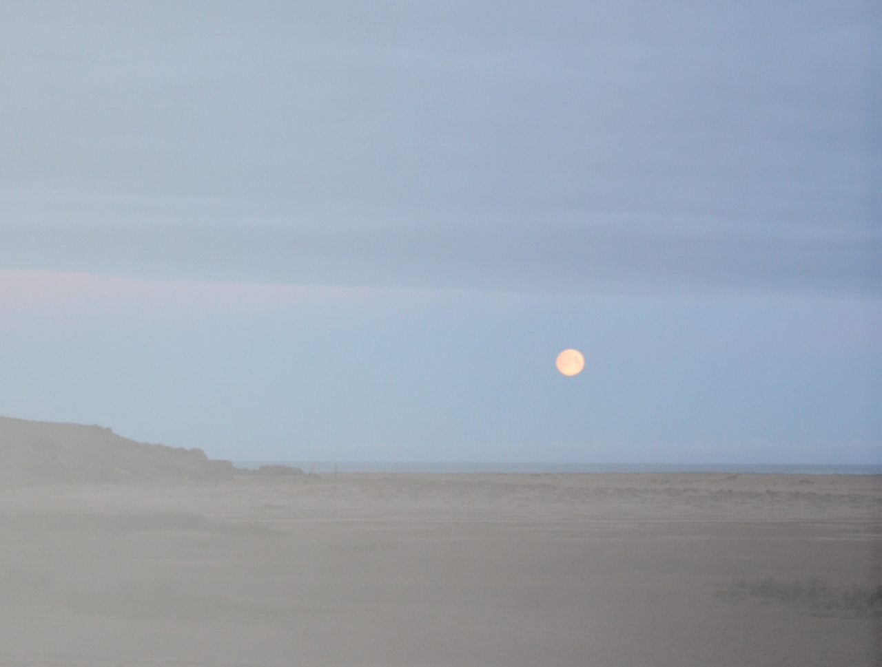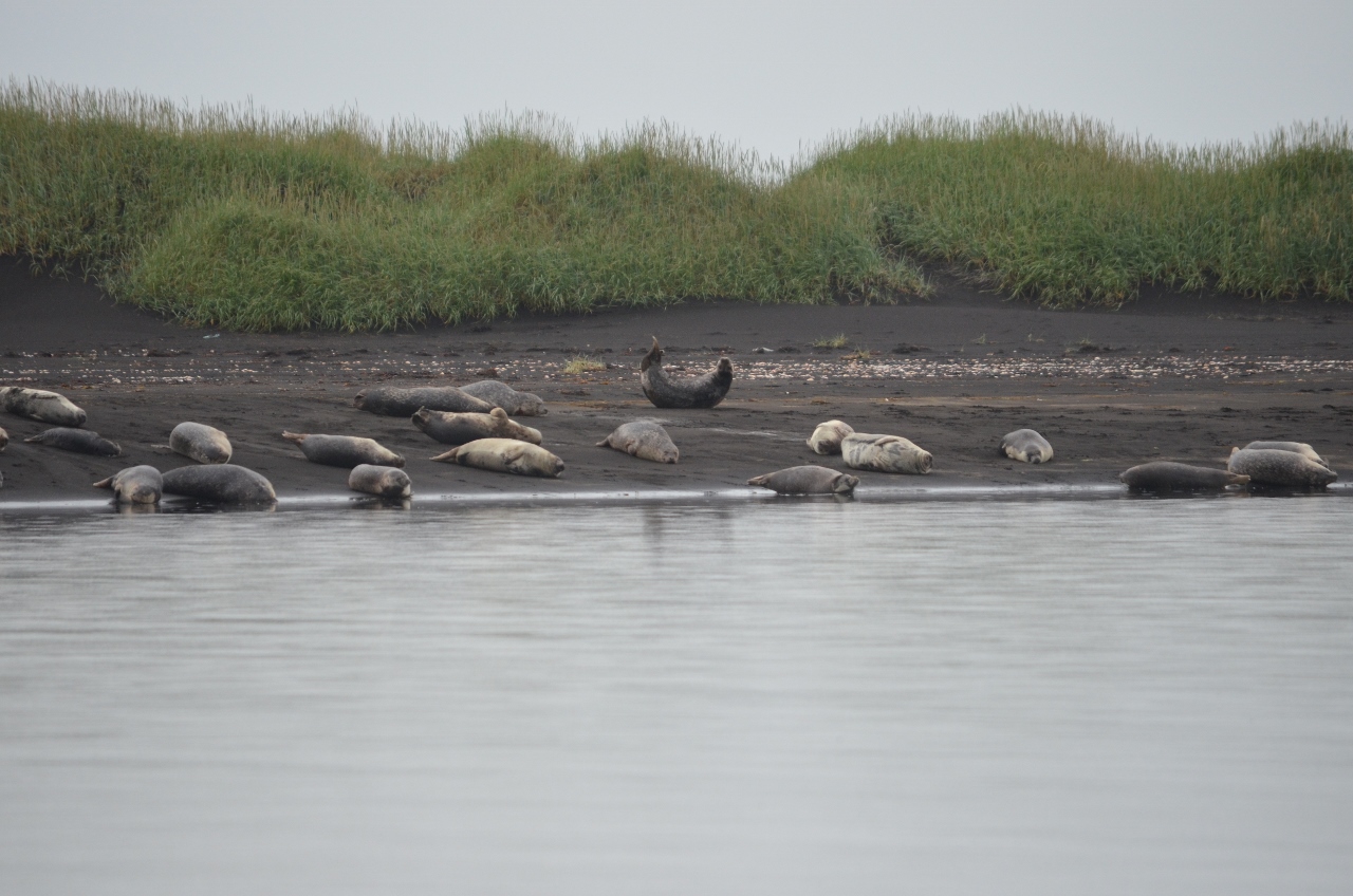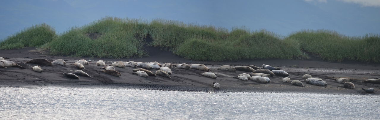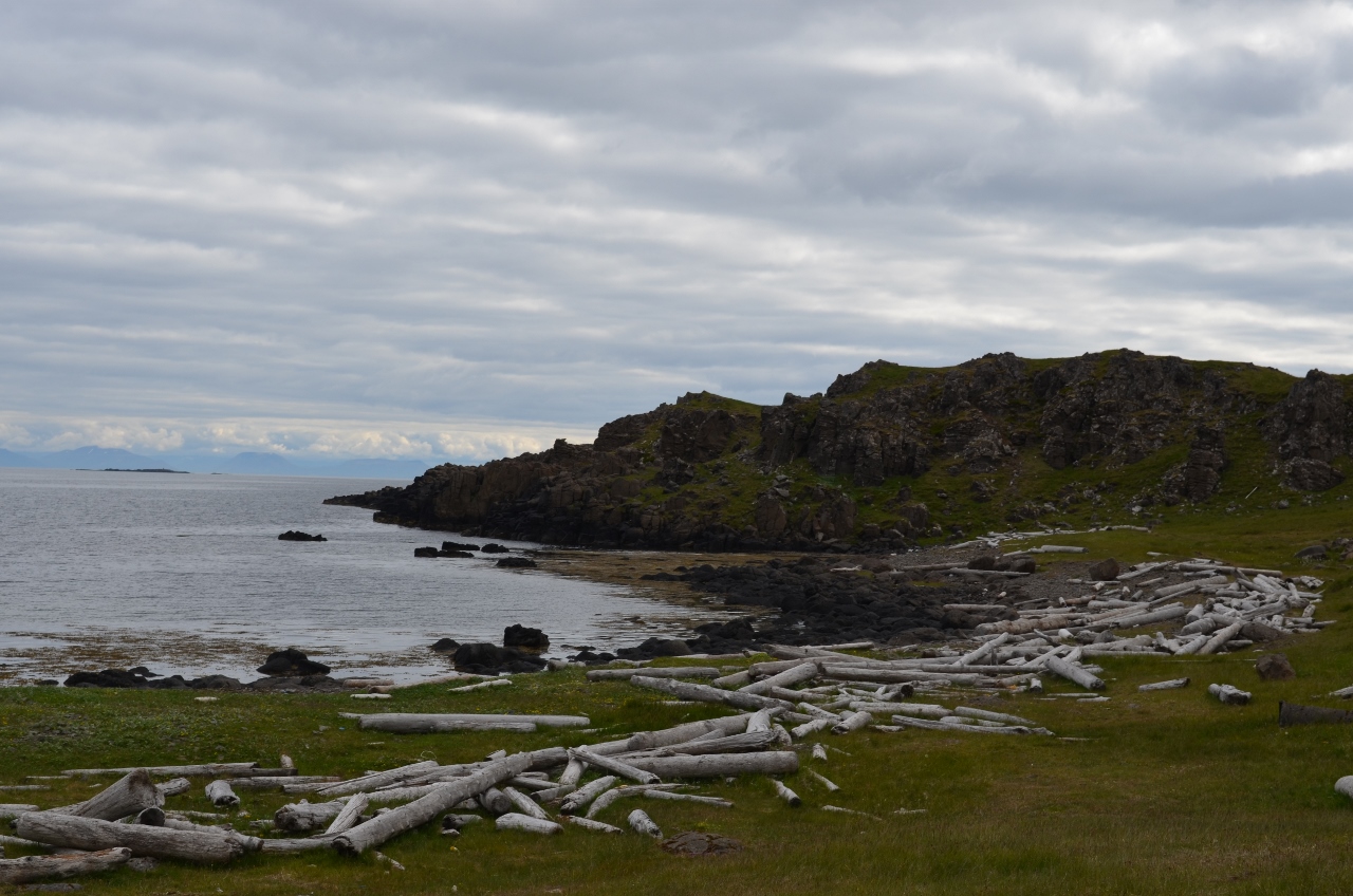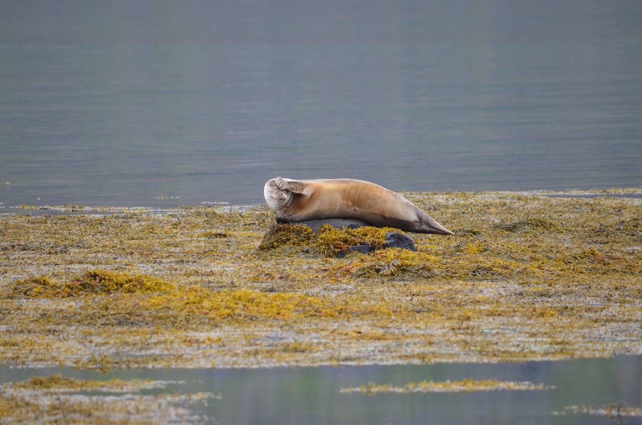 Nous  terminons enfin cette randonnée vers le nord par un saut au micro port de  Kopasker. Pas grand-chose à voir dans ce « village de services pour les agriculteurs de la région » (ça veut dire qu’il y a un abattoir et une usine de produits carnés, où finissent ces mignons agneaux qui agrémentent le paysage et épicent notre conduite en traversant sans bêler avant). Belle vue cependant sur les péninsules enneigées, de l’autre côté de la baie, agréable par les 24° ambiants.