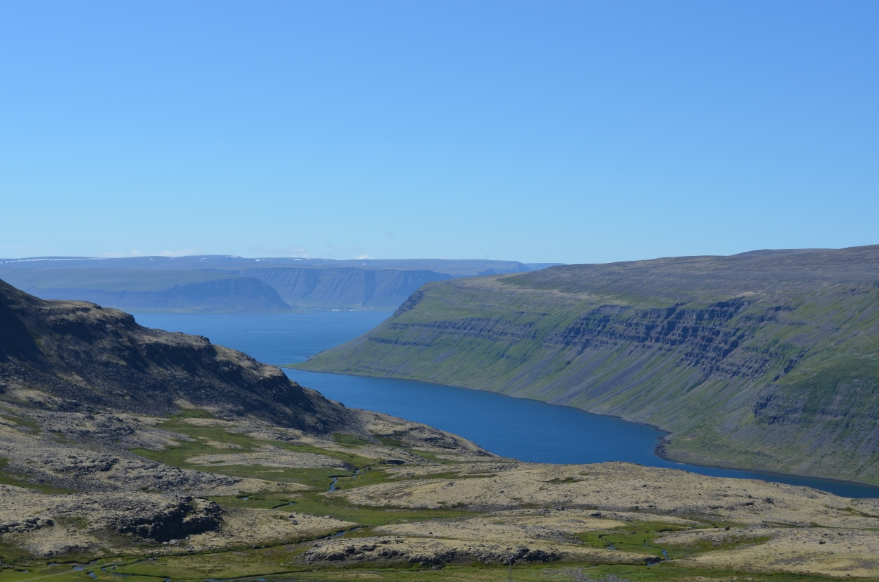 Lors de la descente nous noterons que la végétation commence à réapparaitre à 500m d’altitude, les pâturages à 300m et les grosses fermes à se multiplier en approchant du fjord. Et partout des cascades..