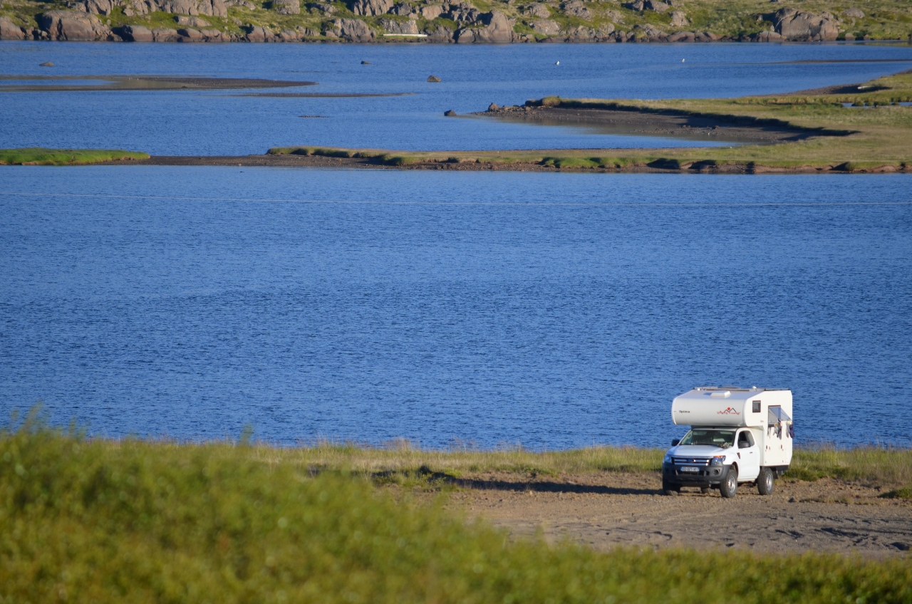 Nous prenons la route du lac  Myvatn . Brève reconnaissance de cet endroit superbe et nous devrons nous résigner. Passer la nuit en dehors des terrains de camping, dans ce parc naturel, est totalement impossible : Les accès aux champs sont fermés et tous les parkings sont signalés interdits. Des rondes nocturnes font respecter les consignes.. Demi-tour de 30 km vers le plus proche village, Laugar, où nous trouvons un parking discret.