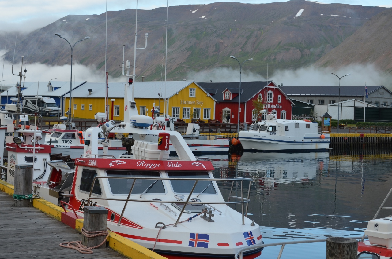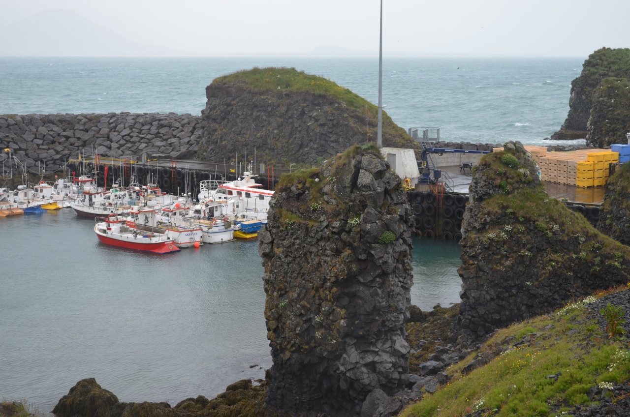 Le nom de cet archipel serait lié aux esclaves irlandais qui s’y sont réfugiés, au IX° siècle, après avoir assassiné leur maitre, viking norvégien colonisateur de l’Islande. Une seule ville sur cette île de de 13.4 km², mais quelle ville ! 4100 habitants, c’est, de loin, la plus grande que l’on ait vue depuis notre arrivée en Islande. Ville dont le cœur est le port, haut lieu de la pêche Islandaise : on y pénètre par un spectaculaire goulet et on y voit plus de chalutiers que de plaisanciers, avec un seul voilier à quai. Les maisons y sont plus jolies, et cossues, que ce que l’on a vu jusqu’à présent. La pêche rapporte plus que l’agriculture!