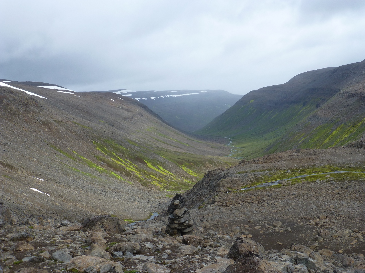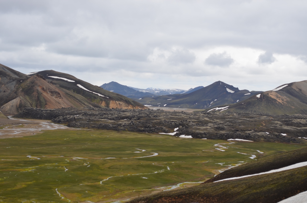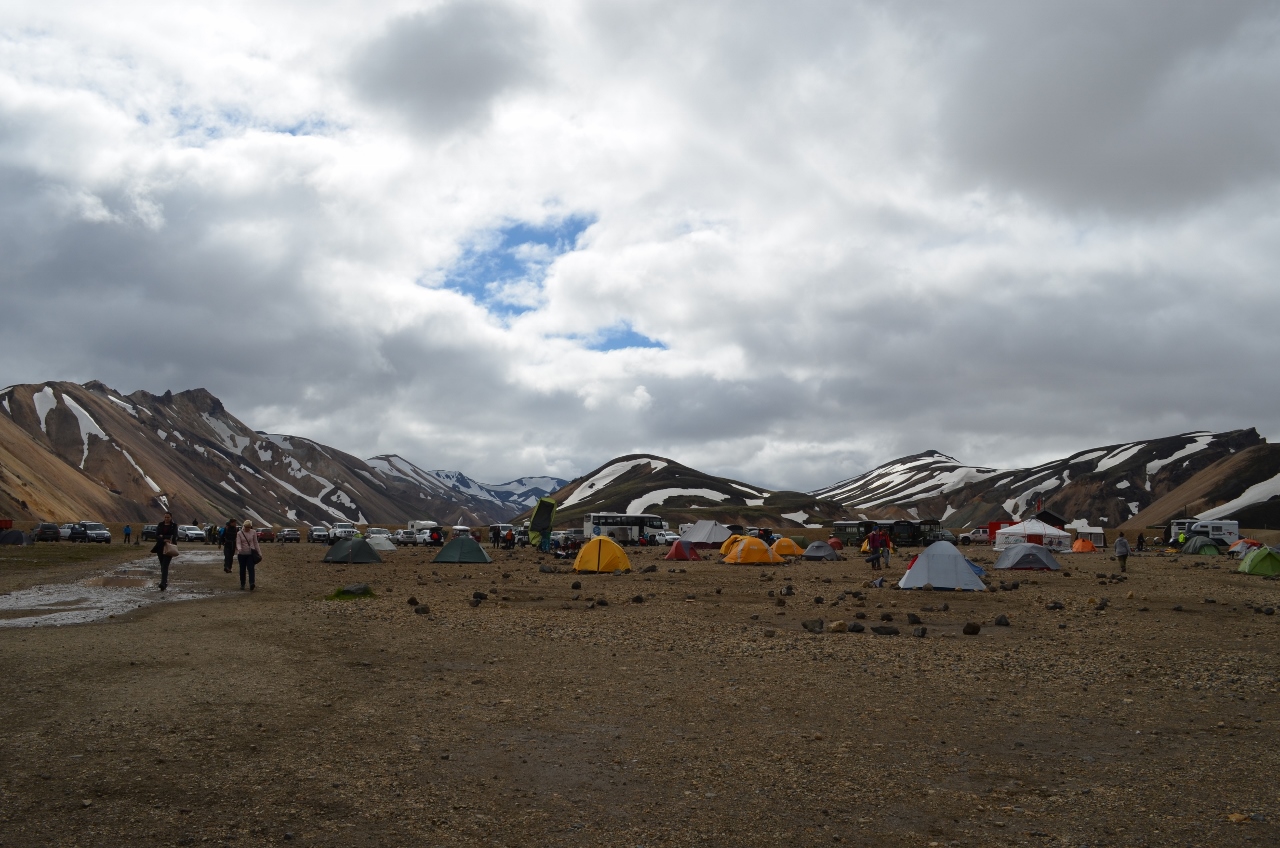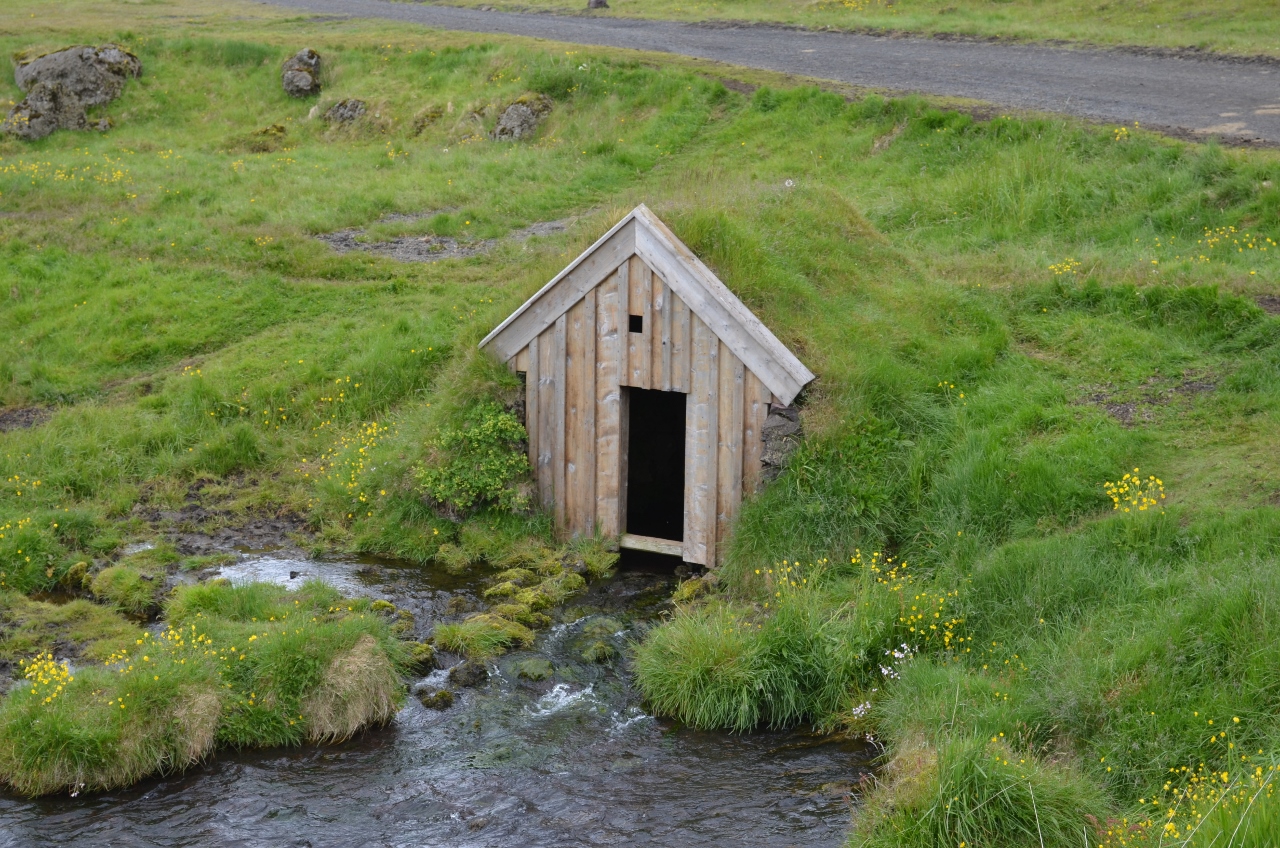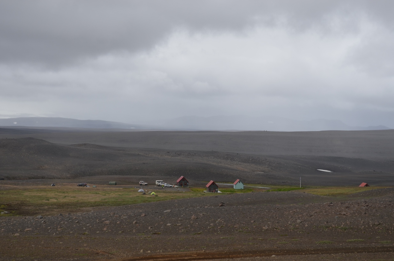 Nous parviendrons enfin, après quelques lacets et sous un ciel chargé, au refuge de Laugafell, près d’une petite source chaude.