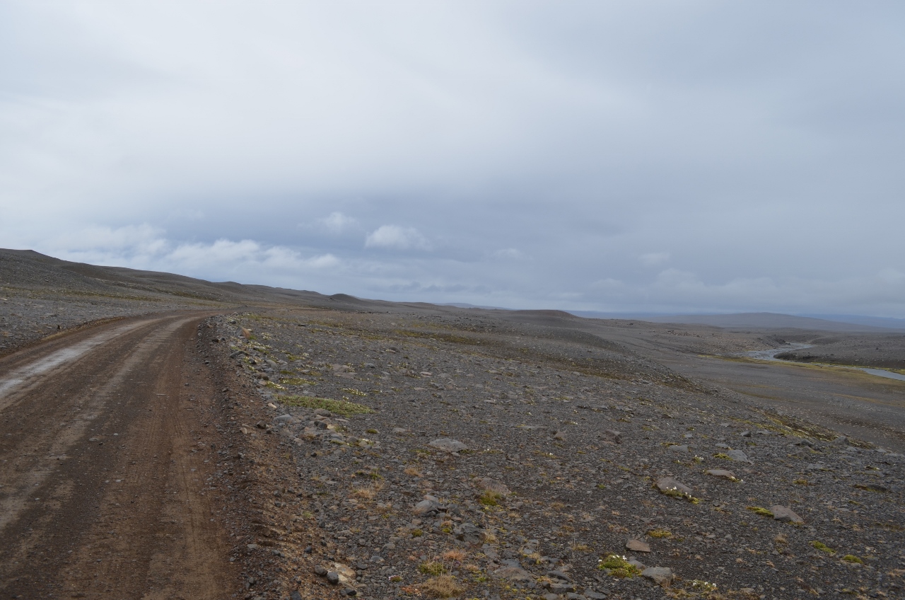 Nous rejoignons donc cette grande piste, qui traverse toute l’île, par un tronçon d’une vingtaine de km de la F881, vers l’est, puis cap au nord par la F26. Longeant dans cette partie la  Skjalfandafljot, elle est effectivement très fréquentable, dans un paysage désertique.