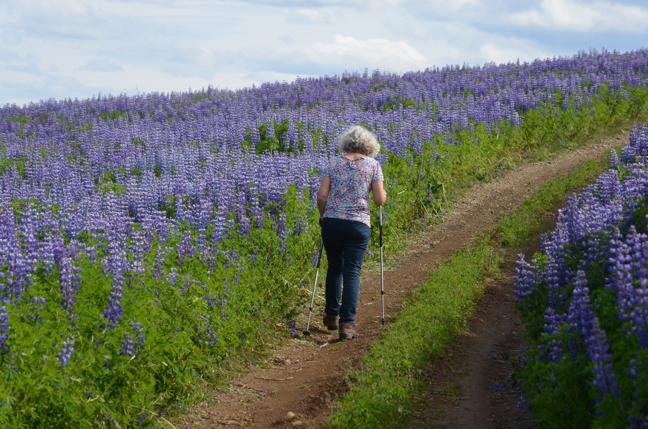 La matinée sera consacrée aux tâches domestiques. L’après midi, balade sur les hauteurs. Le temps étant superbe, Agnès a adopté un camouflage « lupins »