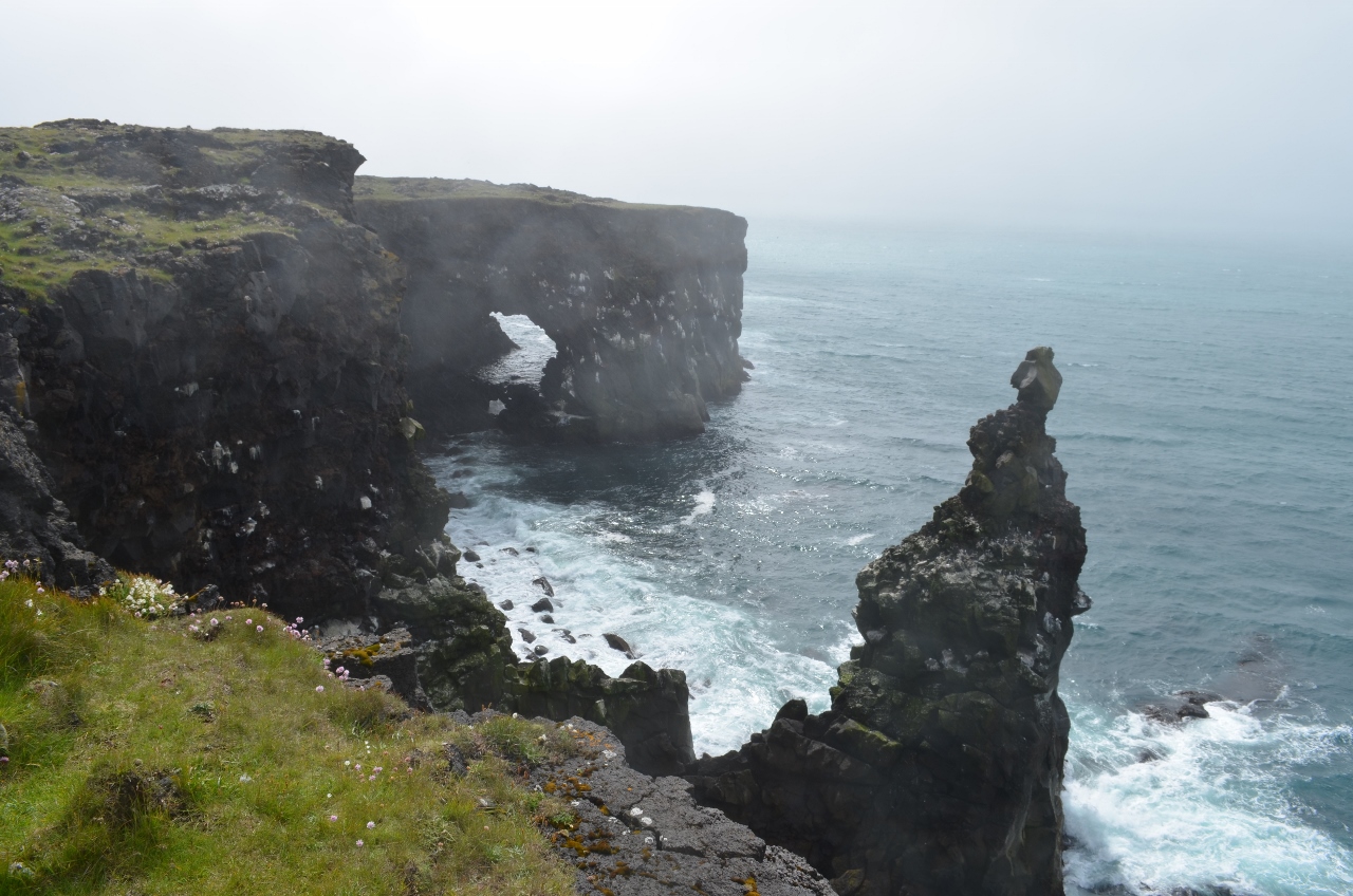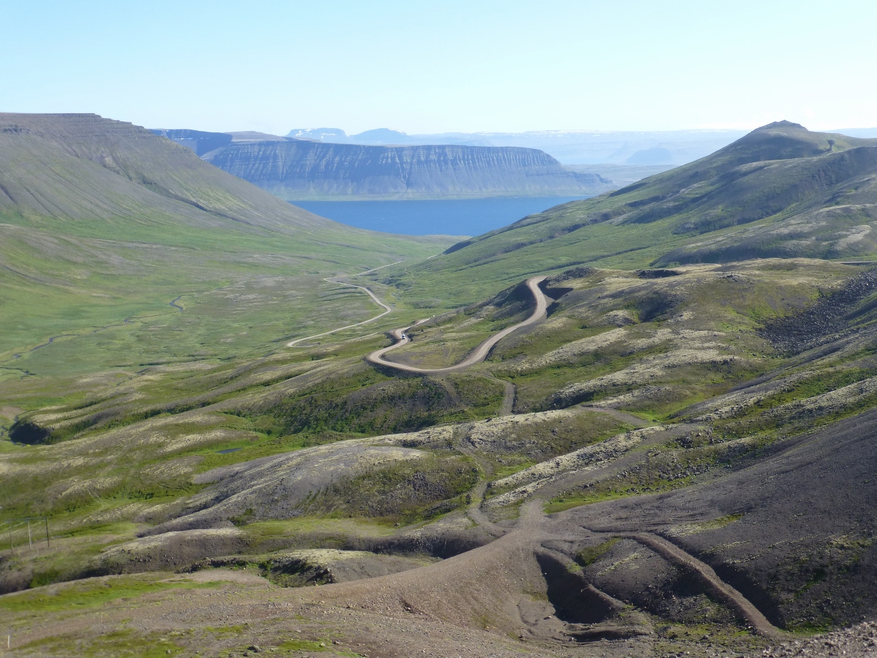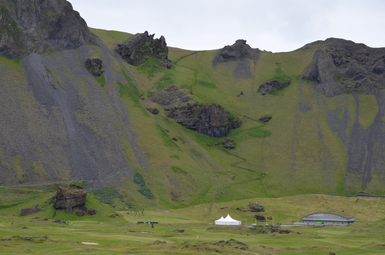 Nous poussons vers  Asbirgy où un raz de marée consécutif à une éruption sous glaciaire, il y a 14000 ans, a taraudé les falaises en un fantastique fer à cheval de 3km de diamètre.