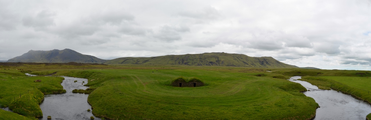 Route N° 1, avant Hella, détour vers Keldur où l’on peut visiter l’une des plus anciennes fermes de l’île, nichée dans un méandre de la rivière.