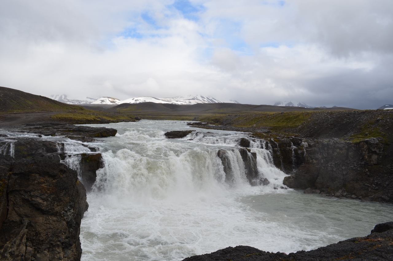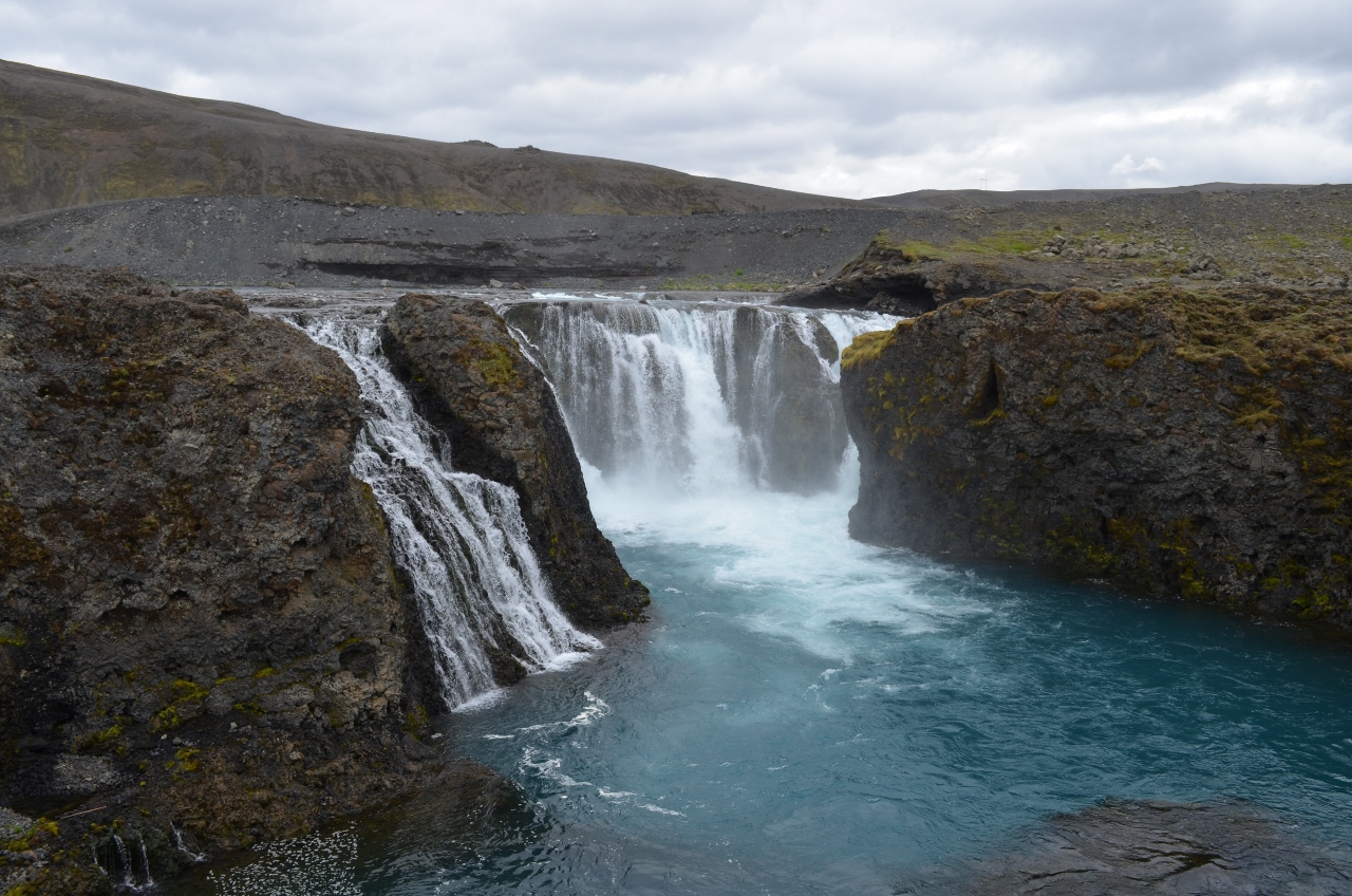 Nous quittons le camping, une fois nos petites affaires domestiques accomplies, pour rejoindre par la piste F347, le site de Kerlingarfjoll. Paradoxalement, la piste est bien meilleure que la gravel road 35, on en profite pour  un bref arrêt aux chutes de Ygarfoss.
