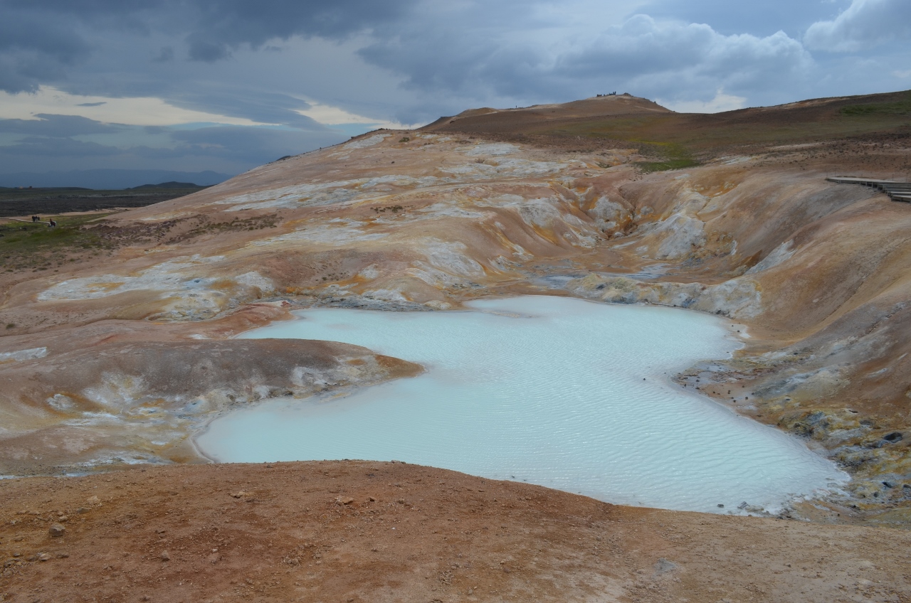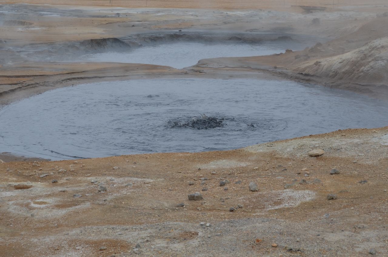 Puis balade dans la zone où se produisit, de 1975 à 1984 une dizaine d’éruptions, les « Krafla fires », produites par une série de cratères secondaires du volcan Krafla, l’ensemble étant situé dans la faille tectonique qui fracture l’Islande .