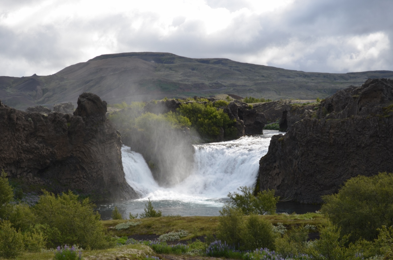 Passage sur la  rive droite, redescente par une  mauvaise gravel road 864, on saute Detifoss, un petit bonjour en passant aux chutes d’ Hafrajilfoss et recherche d’un bivouac que nous trouvons en bordure de route 1.