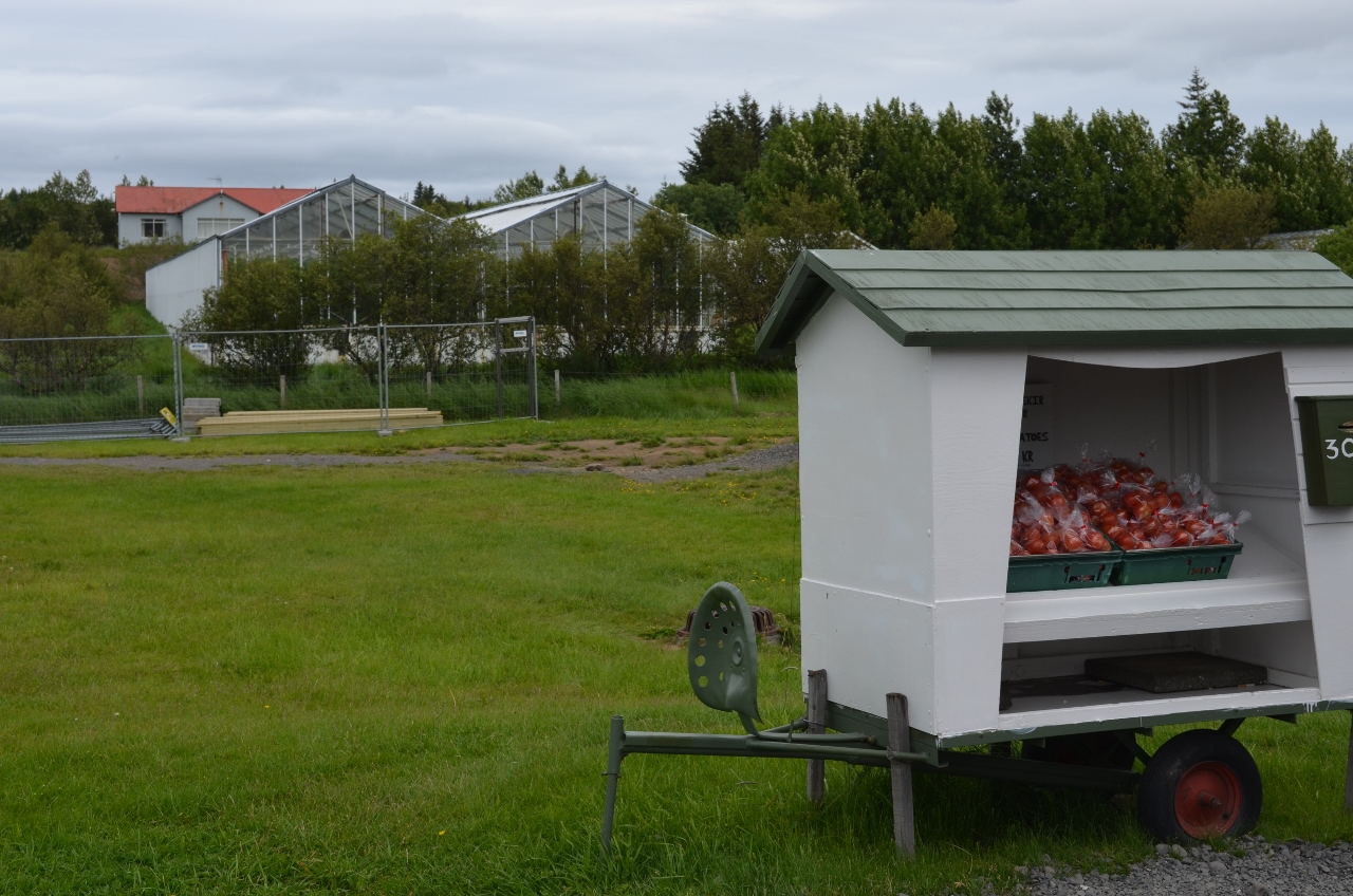 La région est très agricole et l’on y élève, par  centaines, des chevaux. De petite taille, ils n’auraient subi aucun croisement depuis leur importation par les vikings, au X° siècle. Ils auraient la particularité d’avoir 5 allures au lieu de trois, dont une, le tölt, intermédiaire entre le pas et le trop. Ce que nous verrons, ce sont des cavalcades sur les routes, un guide en tête, quelques randonneurs, des dizaines de chevaux qui suivent, libres, et un serre file, précédent la queue d’automobilistes qui patientent. Les clients sont secoués par un trot rapide, harcelés de moucherons alors que les guides, avisés, portent des moustiquaires sur leur bombe.