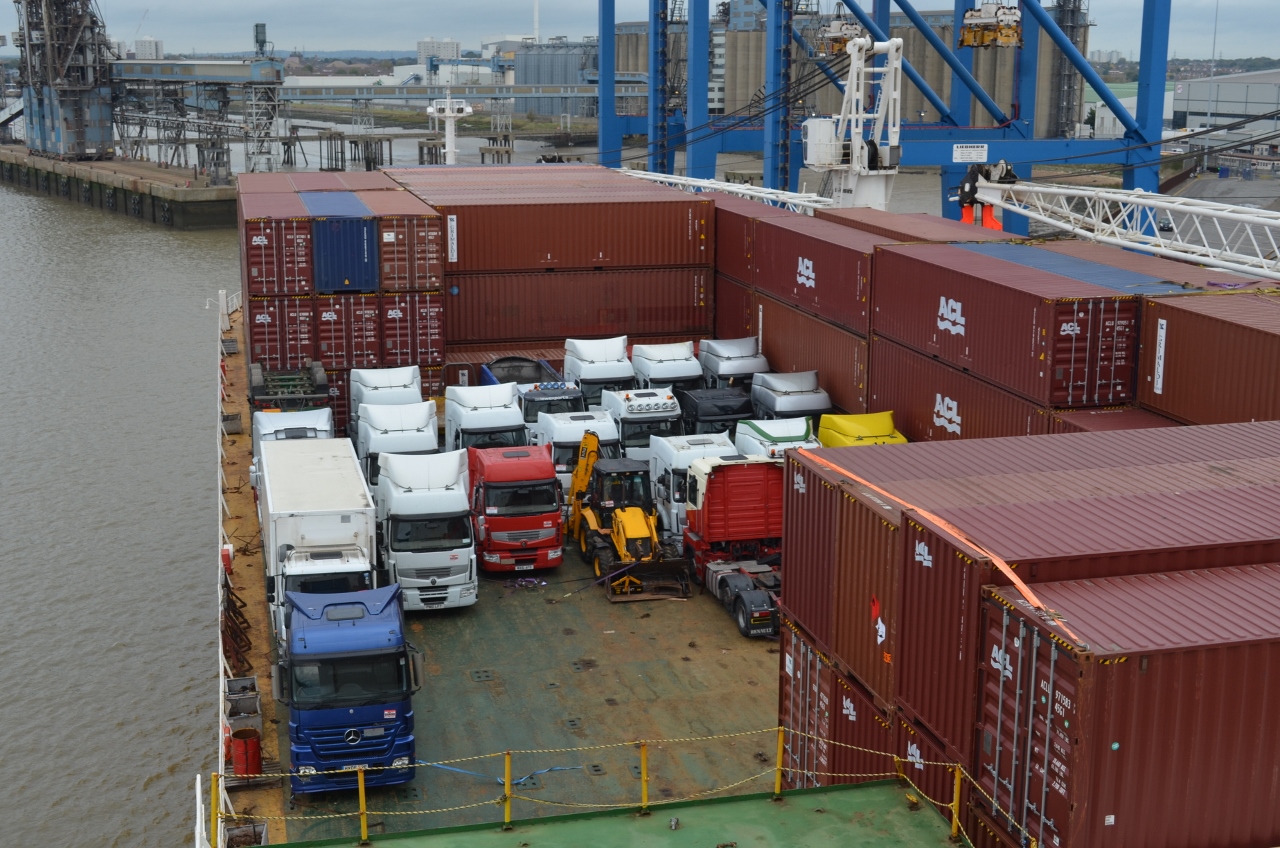 Mer calme, malgré le vent, nous nous réveillerons amarrés en bord de Tamise pour charger des véhicules à destination de Dakar. Grimaldi est en effet la 1° compagnie mondiale pour les navires Ro-Ro. La zone d’embarquement à Tilbury est vieillote. A 40 mn de Londres, le « Terminal international pour les croisières » a dû voir Kipling s’embarquer pour les Indes…