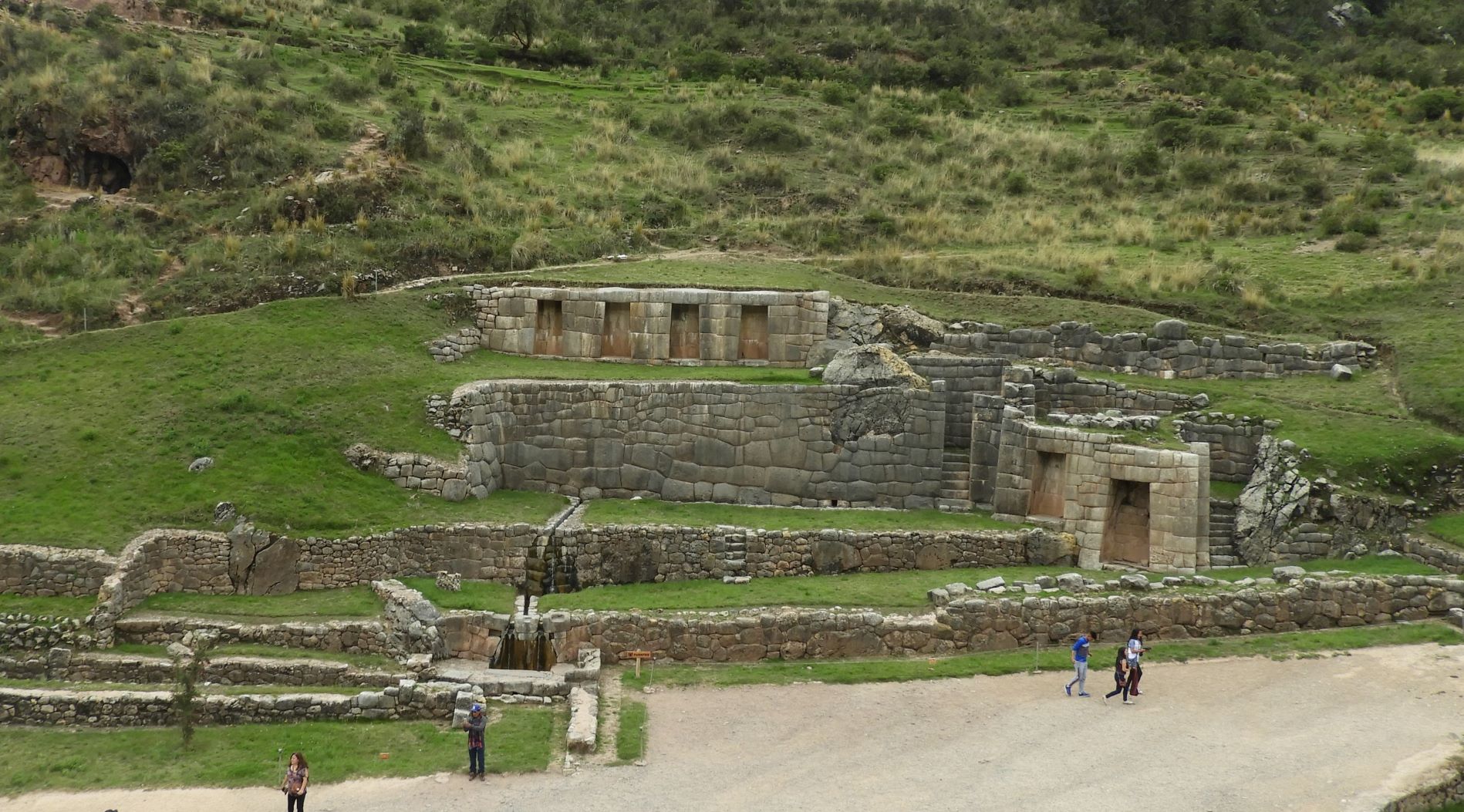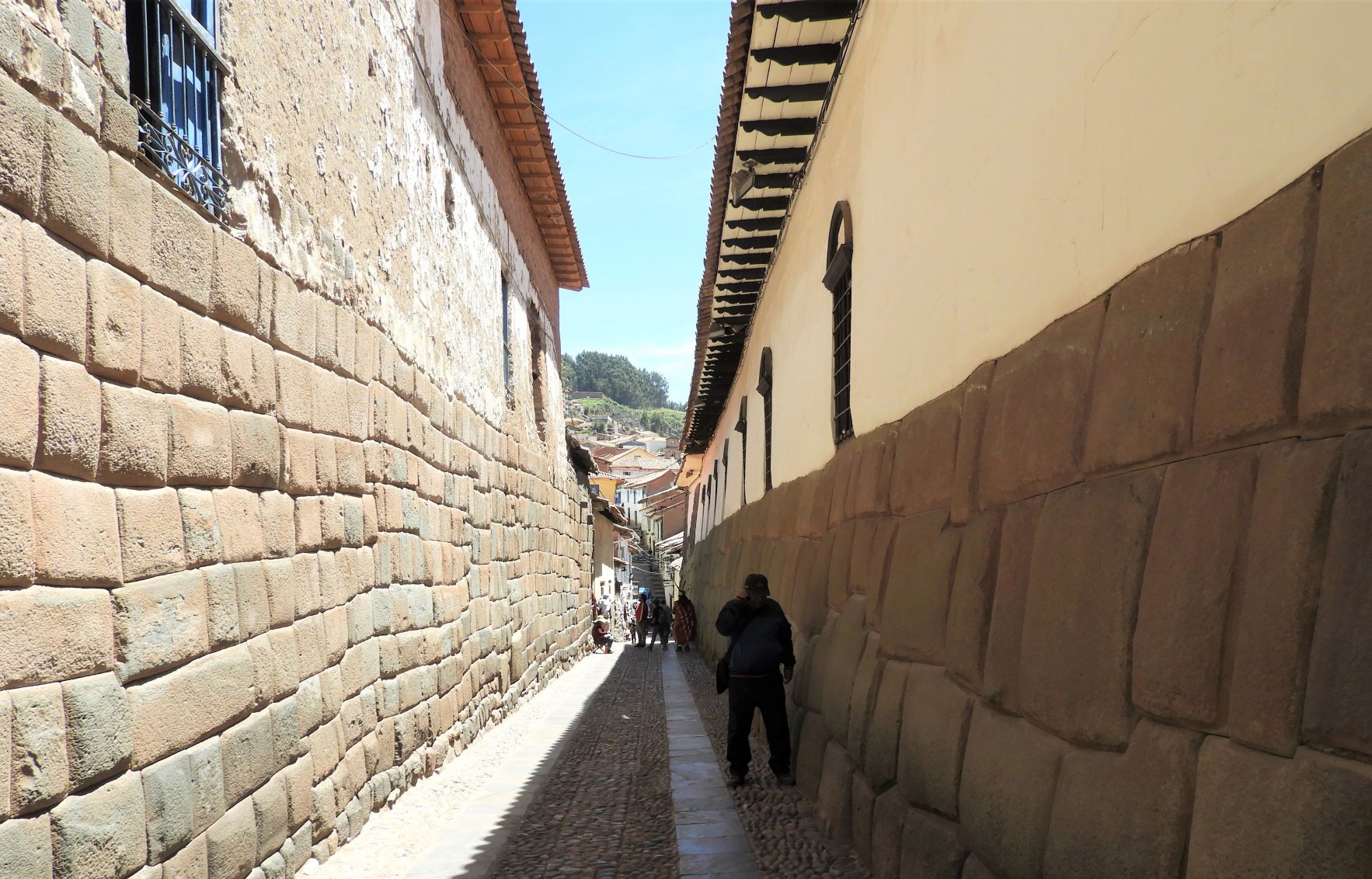 Ils étaient constitués d’énormes blocs polis, assemblés sans mortier et parfaitement ajustés, avec une découpe brisée propre à éviter leur glissement latéral lors de tremblements de terre. On retrouvera cet assemblage sur les fondations de plusieurs immeubles de la vieille ville, caractéristique de la construction inca, de même que les ouvertures en forme de trapèze.