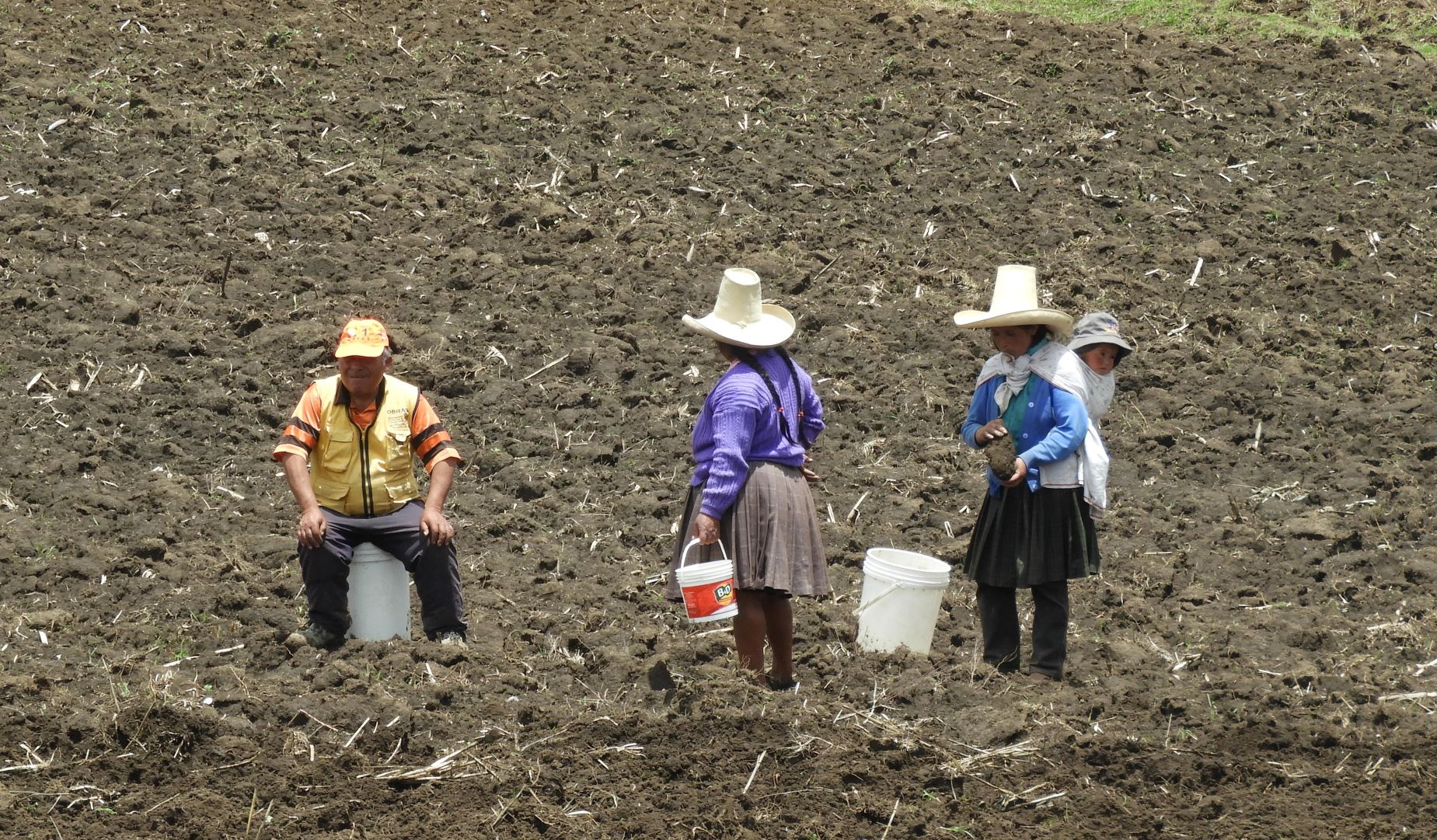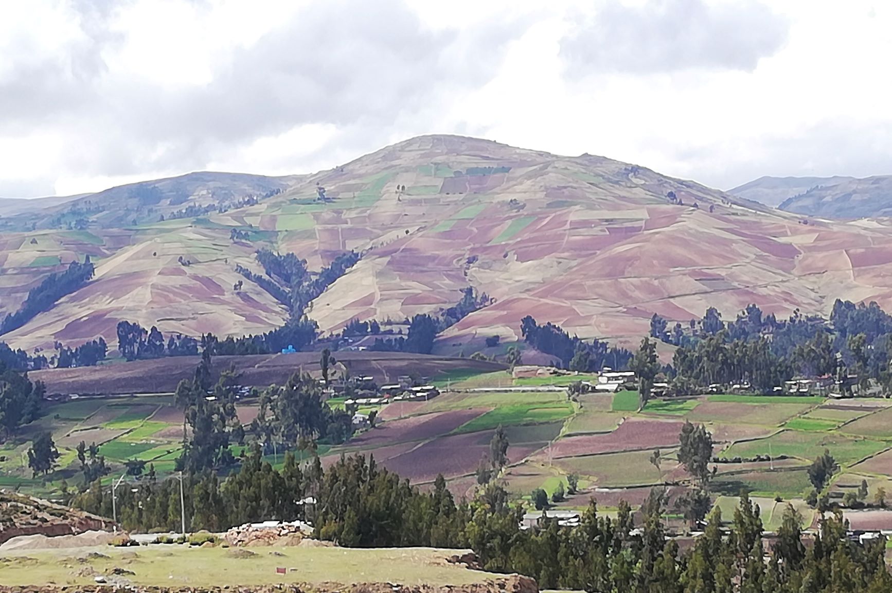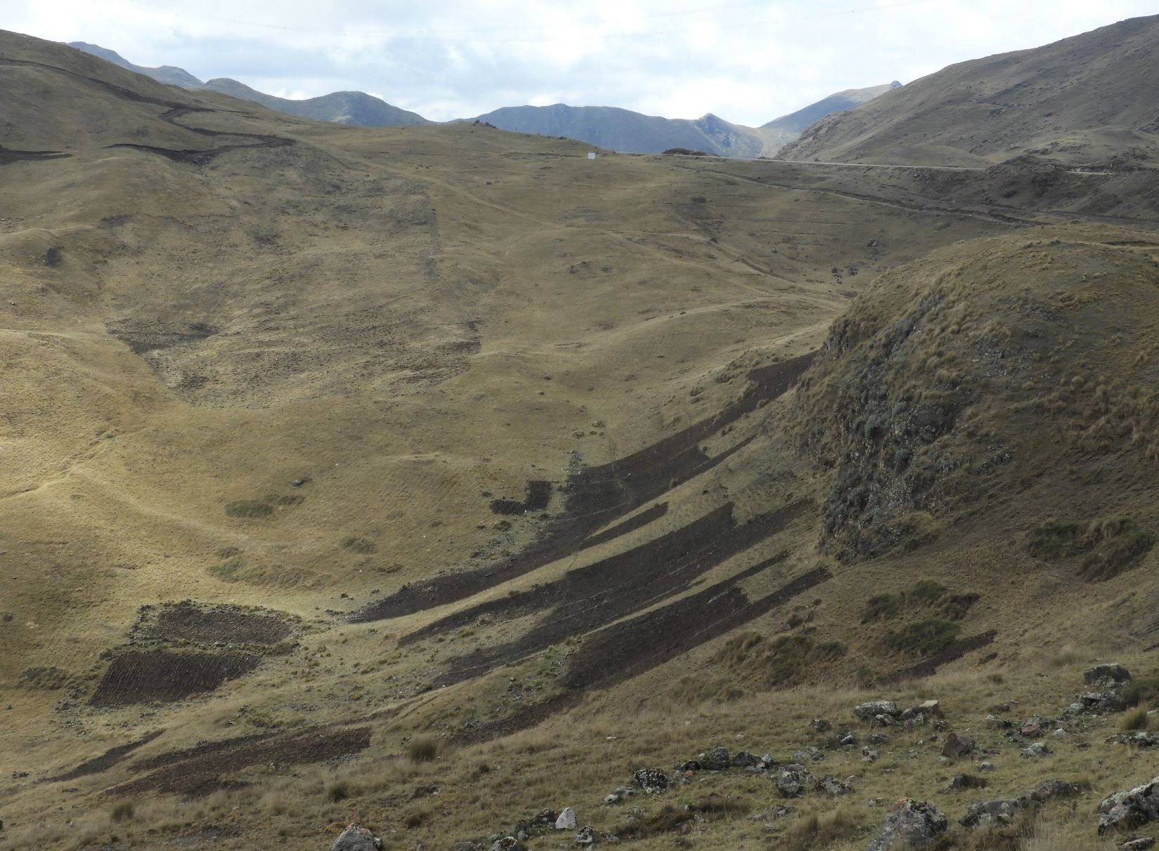 Au-delà de 3900m, beaucoup moins d’agglomérations, plus de ce maraichage qui verdissait le paysage, encore moins d’arbres : on ne voit plus qu’un tapis de graminées et parfois des parcelles, sur les versants les mieux exposés, qui viennent d’être labourées. Bien plus qu’en Bolivie, l’agriculture est mécanisée et seules les terres les plus pentues sont retournées à la main. Dans le brouillard et l’altitude, les couleurs sont moins riantes.