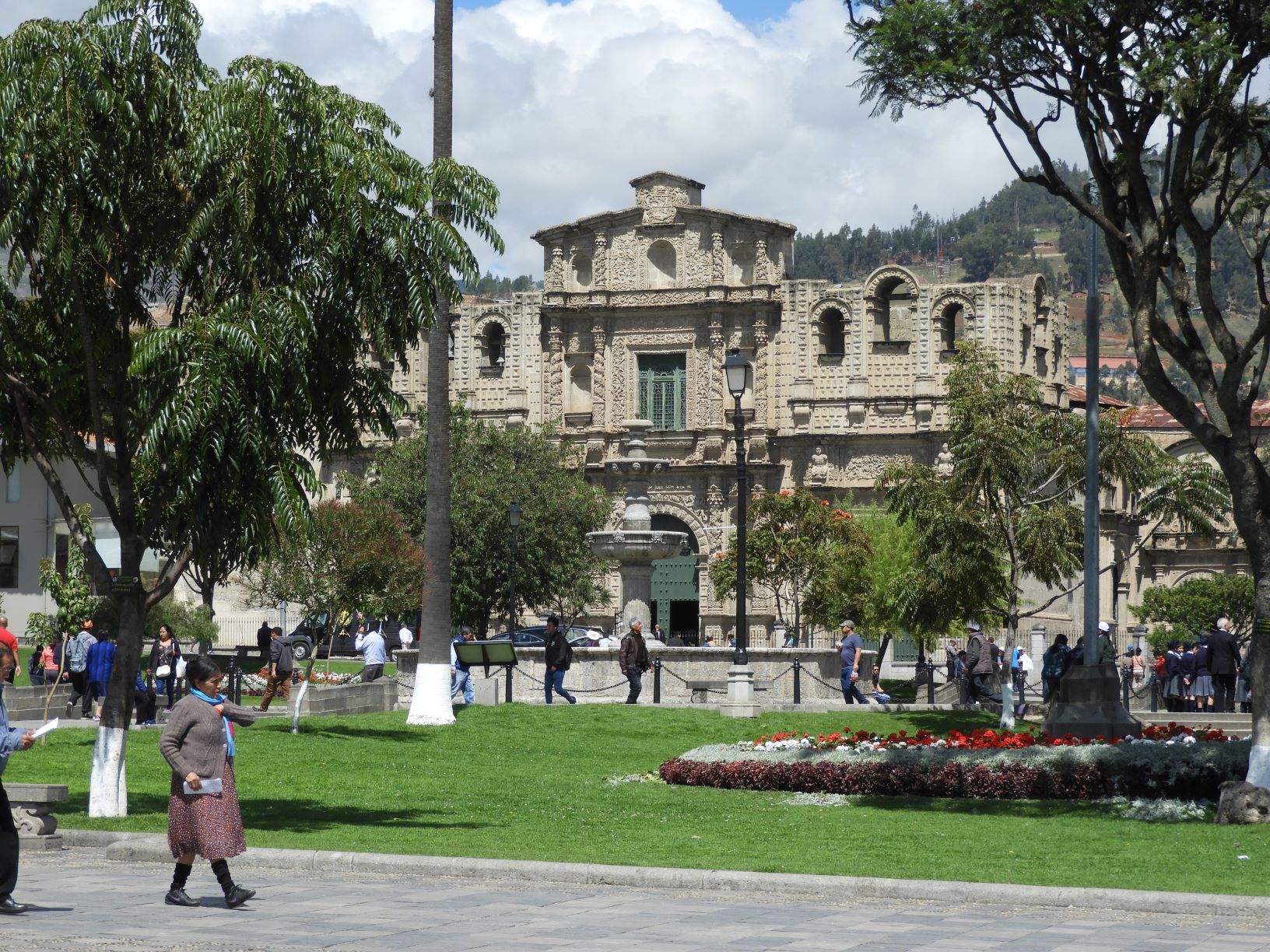 Jolie place d’armes, qui nous rappelle celle d’Arequipa, avec toutefois une cathédrale bien plus modeste. Les arcades abritent comme dans la plupart des villes péruviennes, services publics, banques et agences de voyage. On y repère quand même « Le » café wifi où nous pourrons satisfaire notre addiction à l’internet en prenant un second petit déjeuner en terrasse, et what’sapper avec la famille.